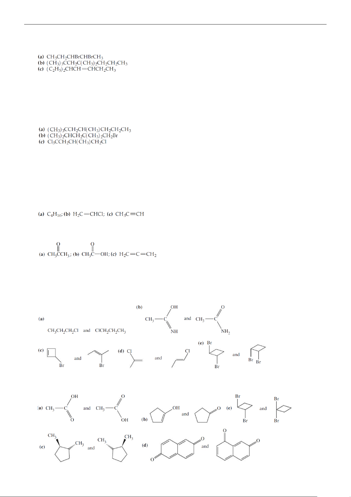 60. Với mỗi cặp hợp chất dưới đây hãy chỉ ra cặp nào là giống nhau, đối phân, hay là loại đồng phân khác.