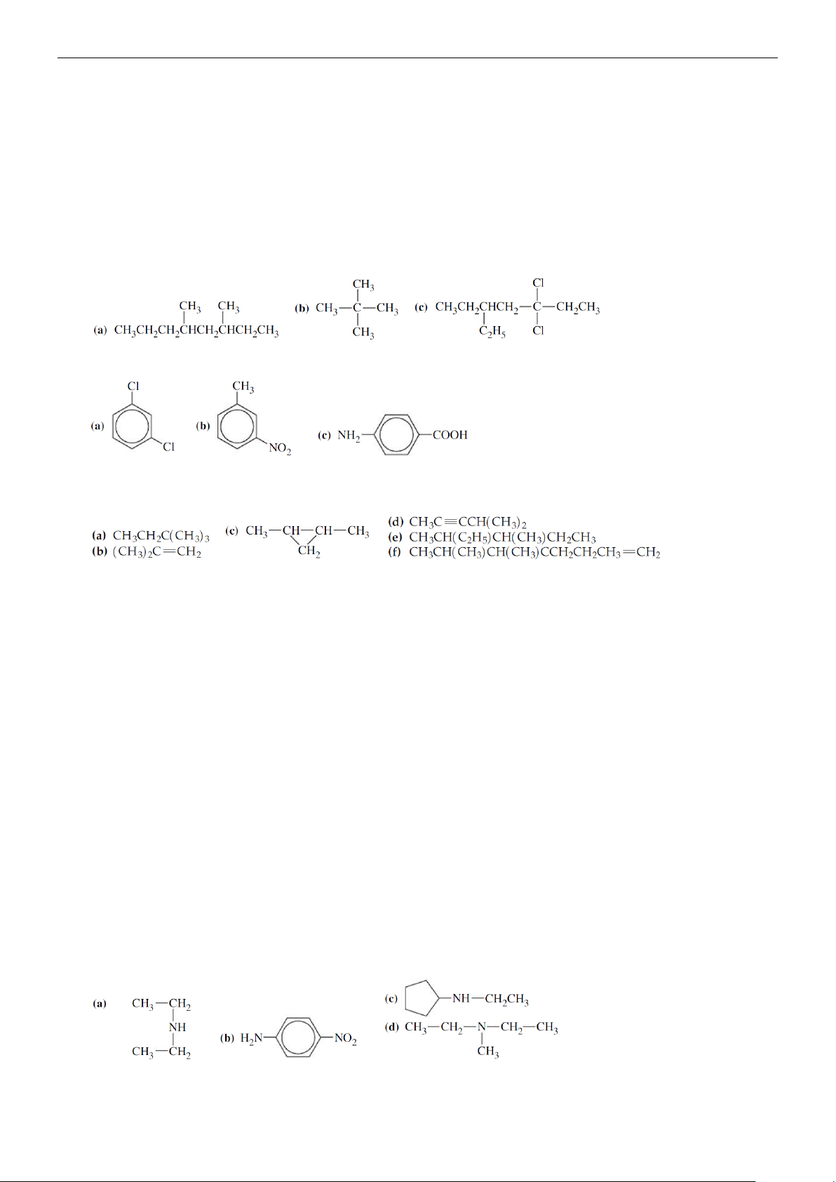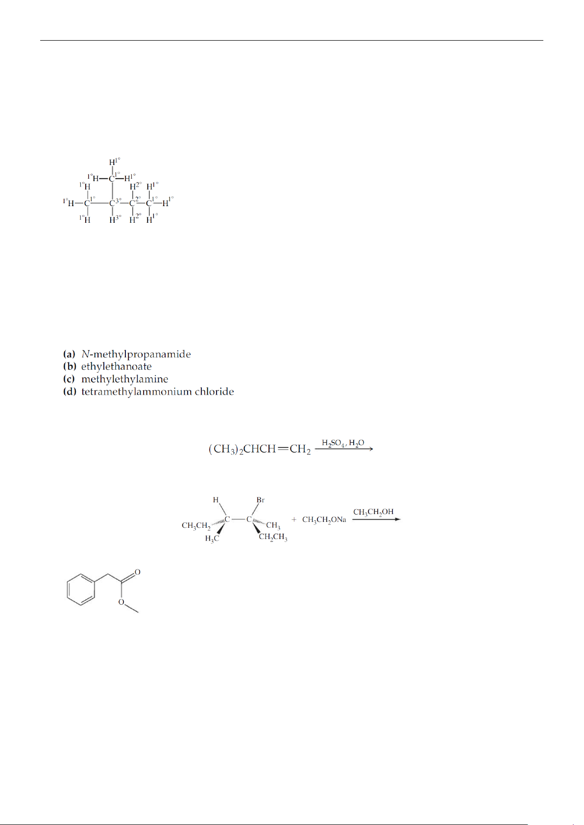 (a) 3-isopropyloctane (b) 2-chloro-3-methylpentane (c) 2-pentene (d) dipropyl ether 3.