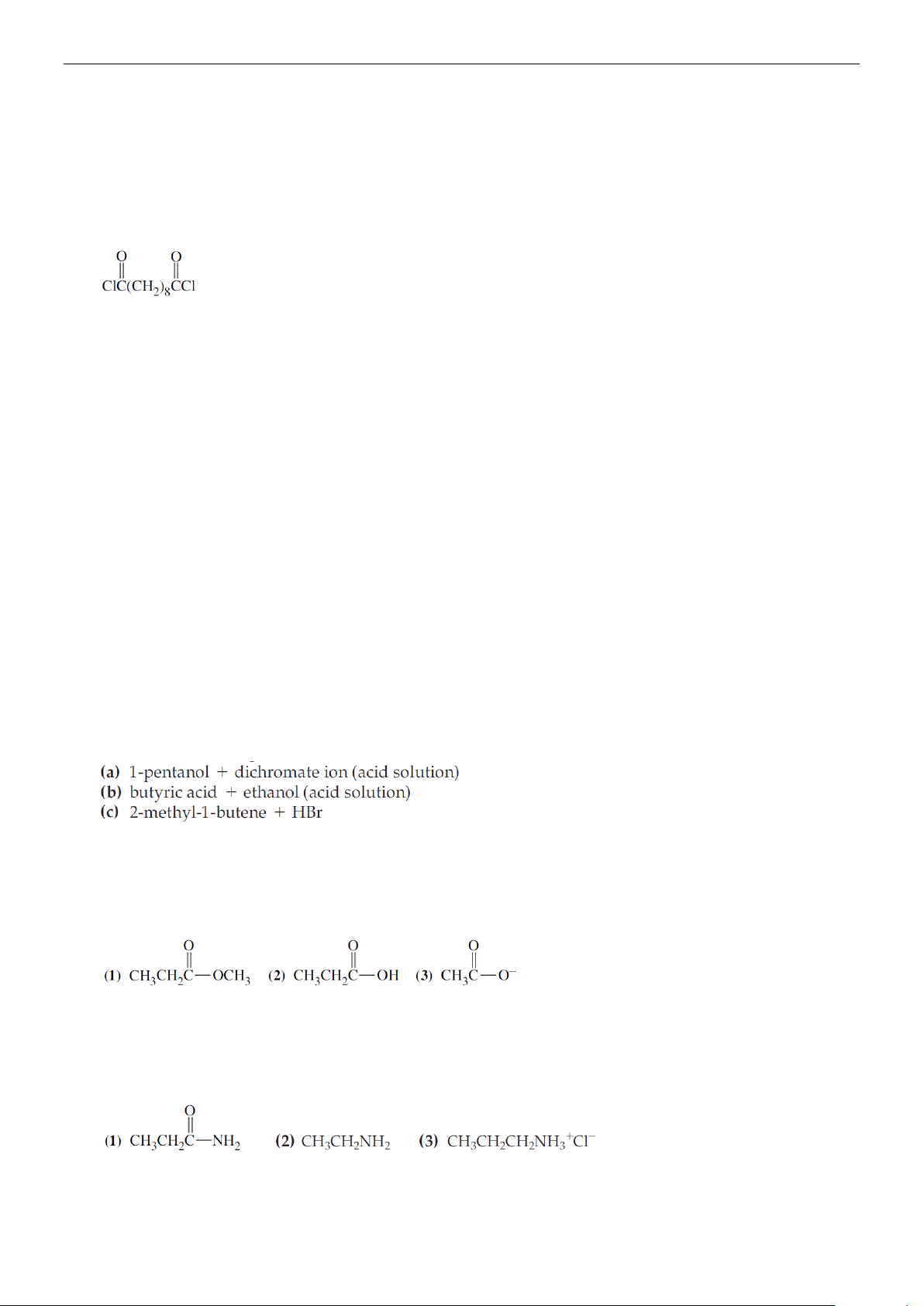 (a) CH3CH2COOH (b) CH3CN (c) CH3CH2NH2 7.
