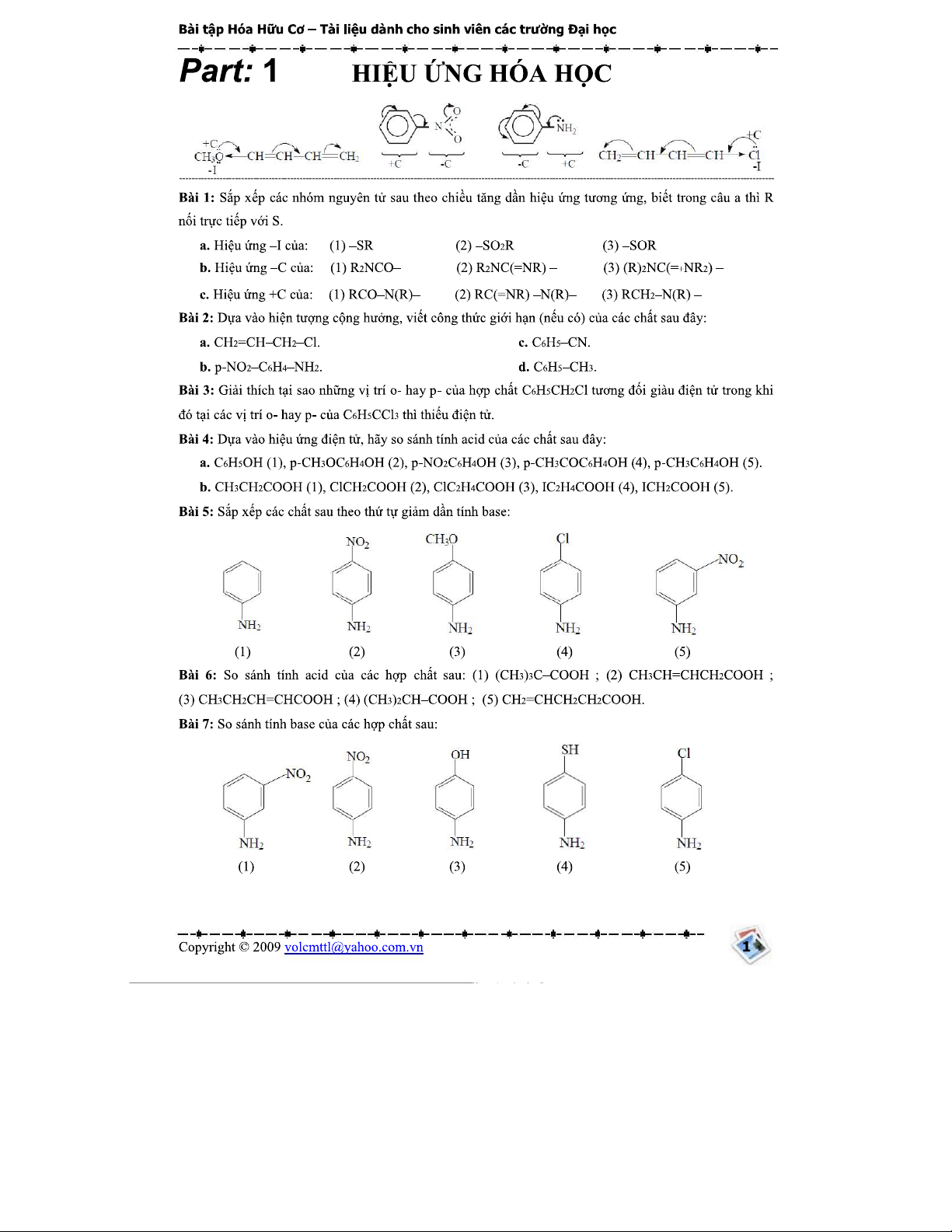 Bài tập Hóa hữu cơ (Tập 1): Phân tích và Giải bài tập