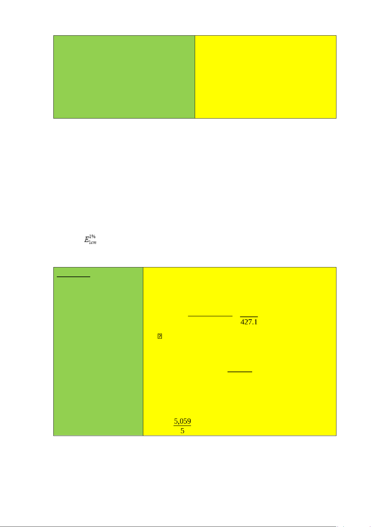 bằng quang phổ hấp thụ UV – VIS. lOMoAR cPSD| 46342985 Tóm tắt: Bài làm: E(1%,1cm) = 715