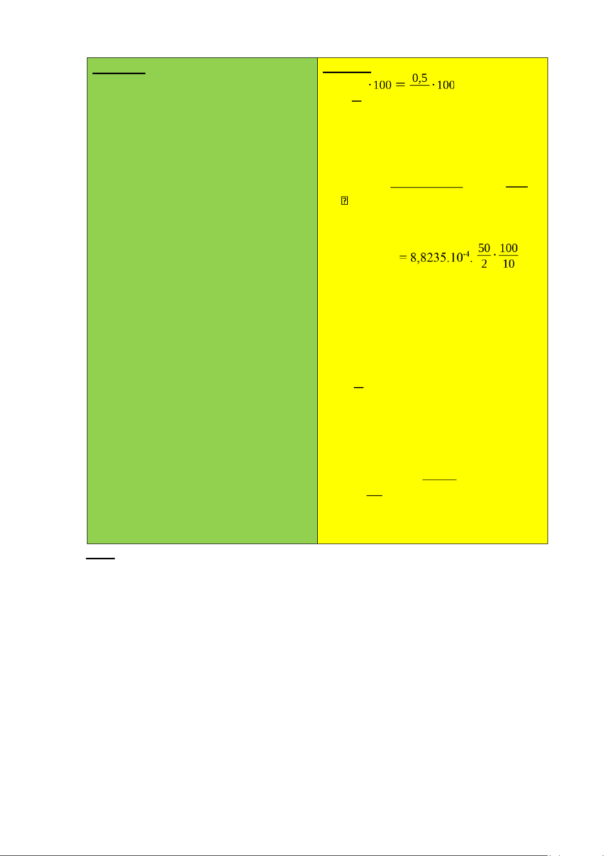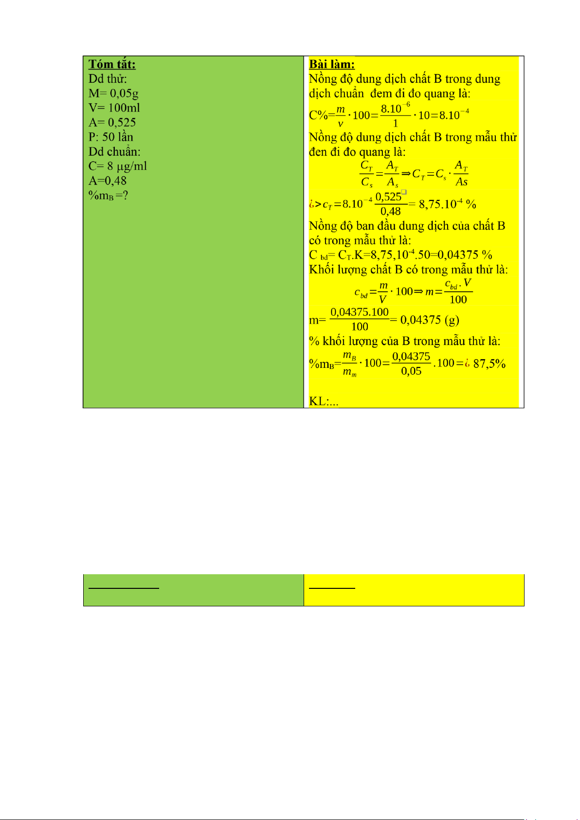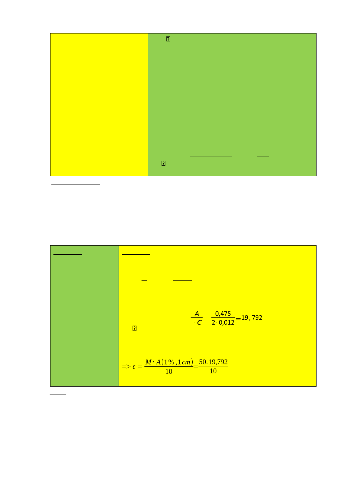 b/. Trình bày công thức cơ bản của định luật Lambert – Beer trong quang phổ hấp thụ. Tóm tắt: Bài làm: P: 2ml → 500ml
