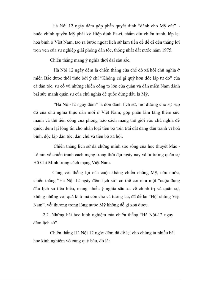 2.2. Những bài học kinh nghiệm của chiến thắng “ Hà Nội 12 ngày đêm lịch