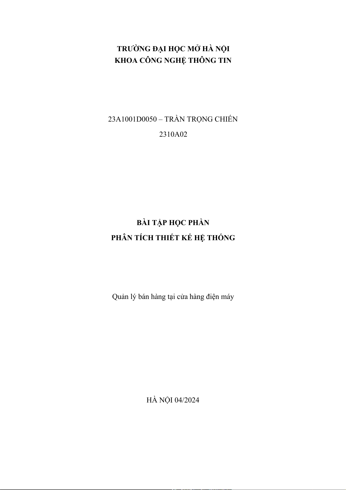 23A1001D0050 – TRẦN TRỌNG CHIẾN 2310A02 BÀI TẬP HỌC PHẦN