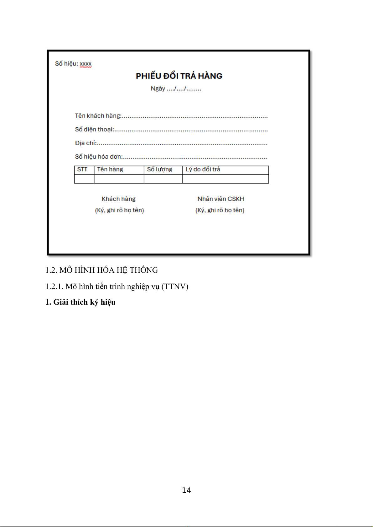 Nếu kho hàng không còn mặt hàng này thì hoàn tiền cho khách hàng 1.1.4. Mẫu biểu