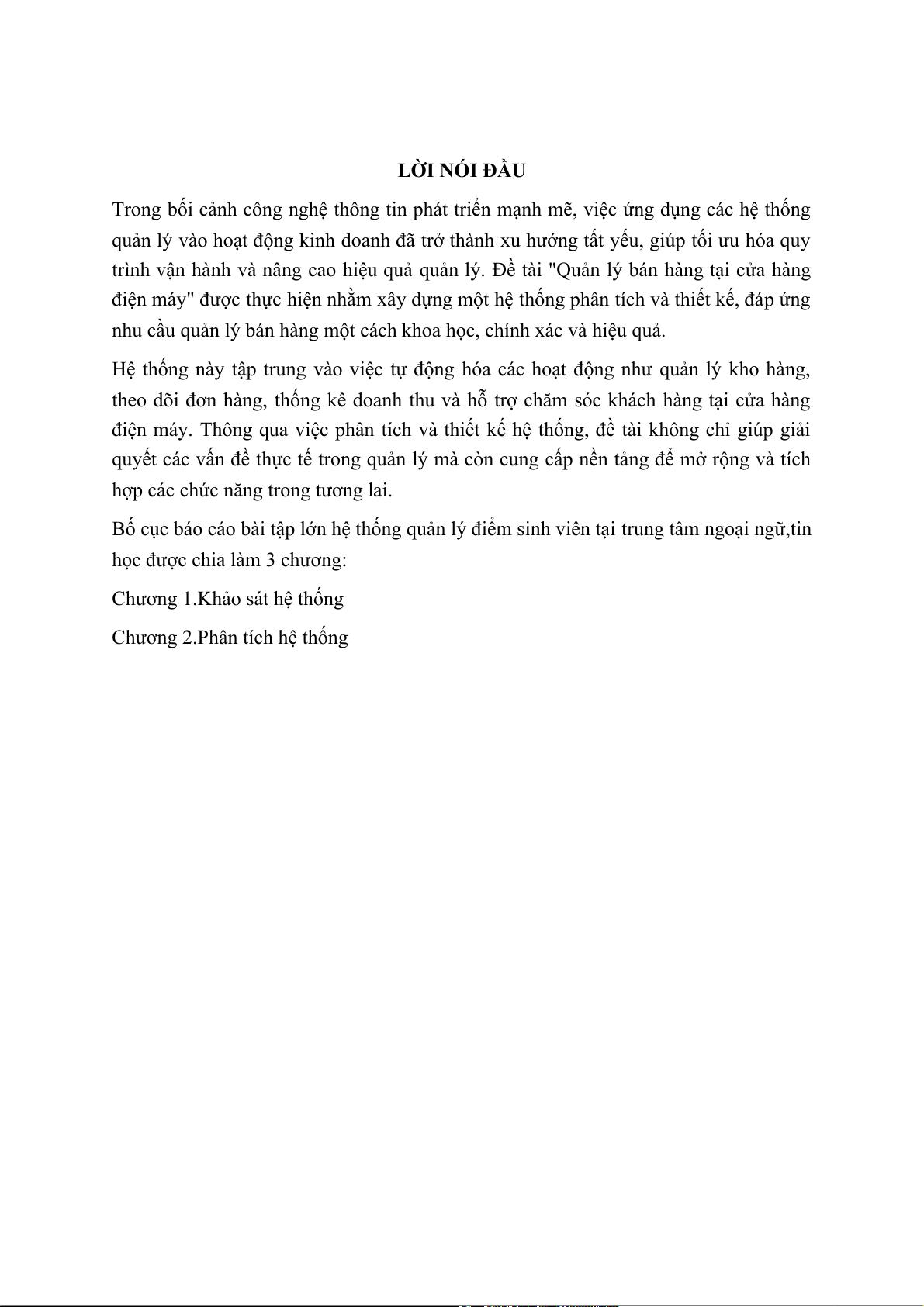 Quản lý bán hàng tại cửa hàng điện máy HÀ NỘI 04/2024 LỜI NÓI ĐẦU