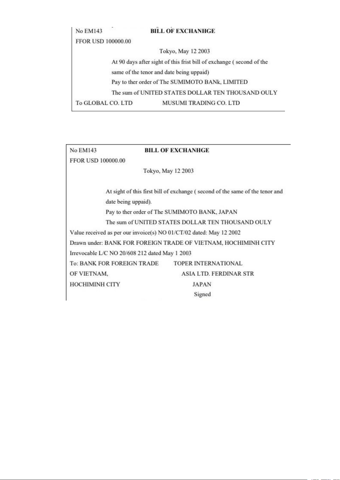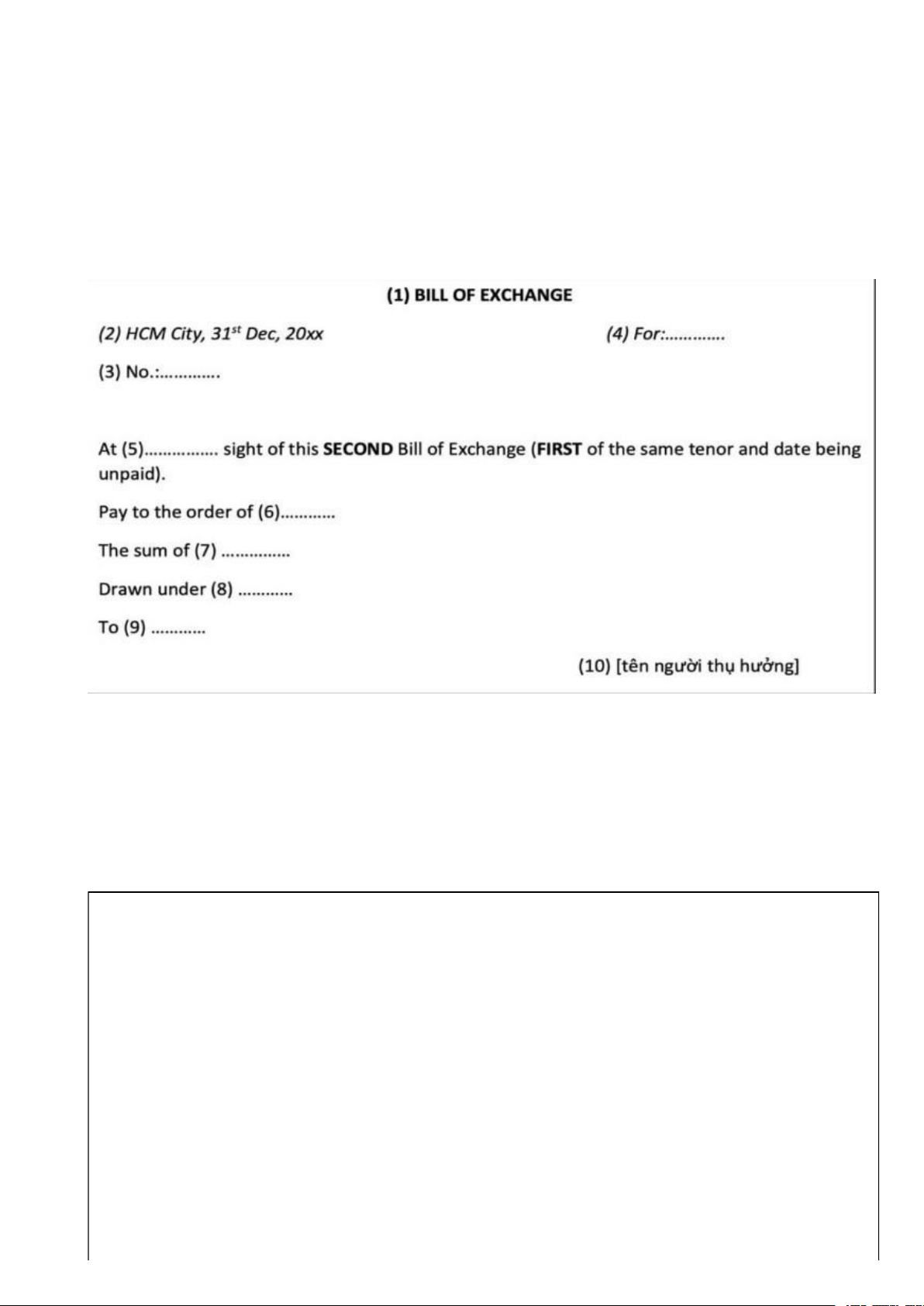 2. Ví dụ các mẫu hối phiếu BILL OF EXCHANGE