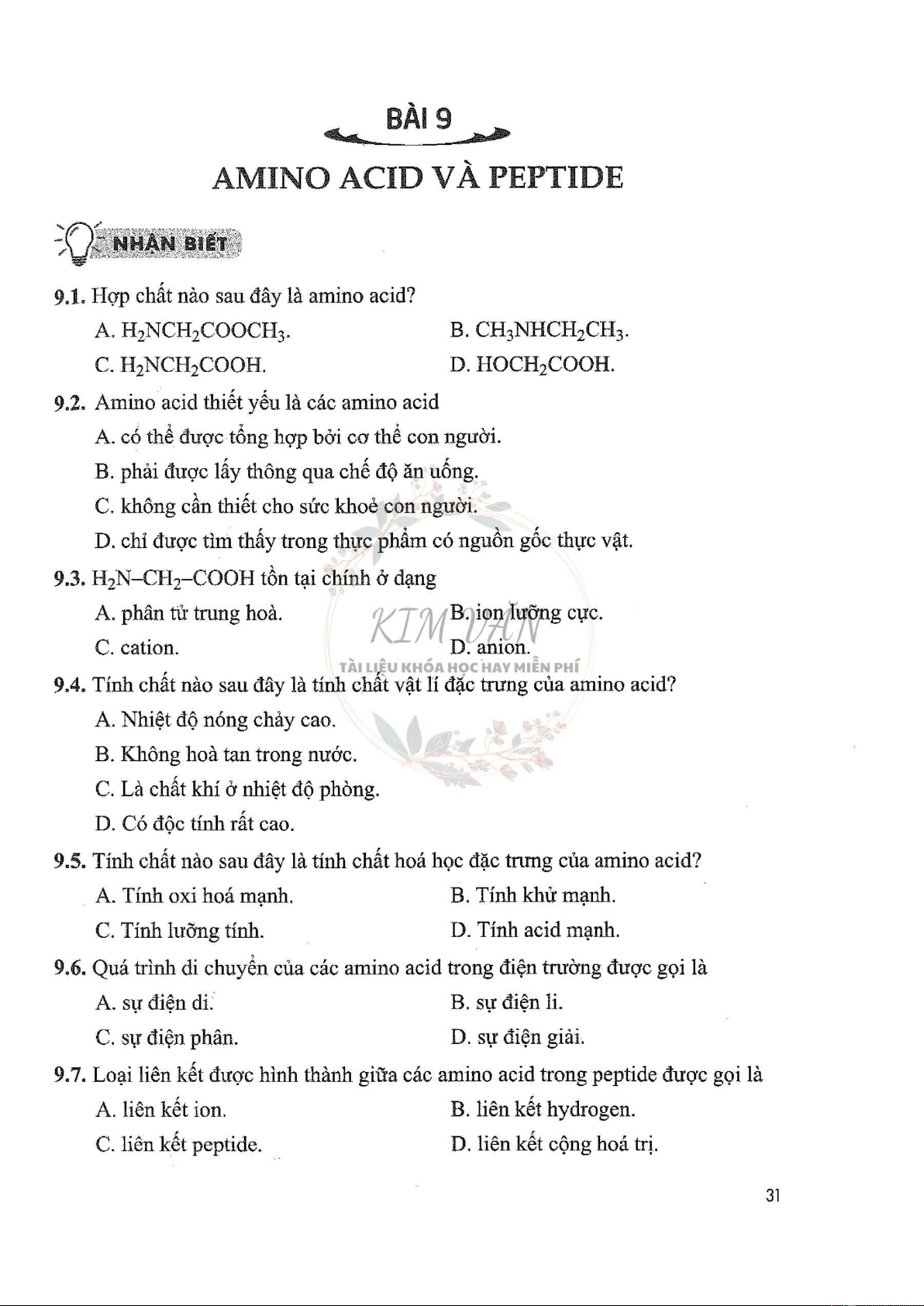 Chủ đề: Chương 3: Amin, amino axit và protein 32 tài liệu