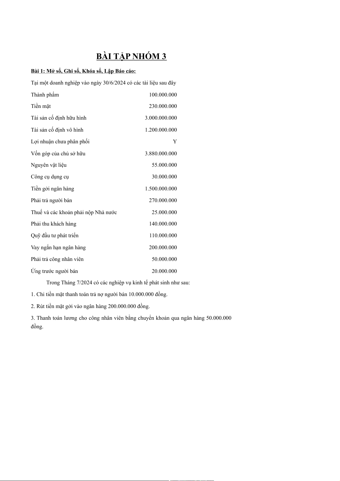 Trong tháng 7/2024 công ty tiến hành các hoạt động kinh doanh.Các nghiệp vụ