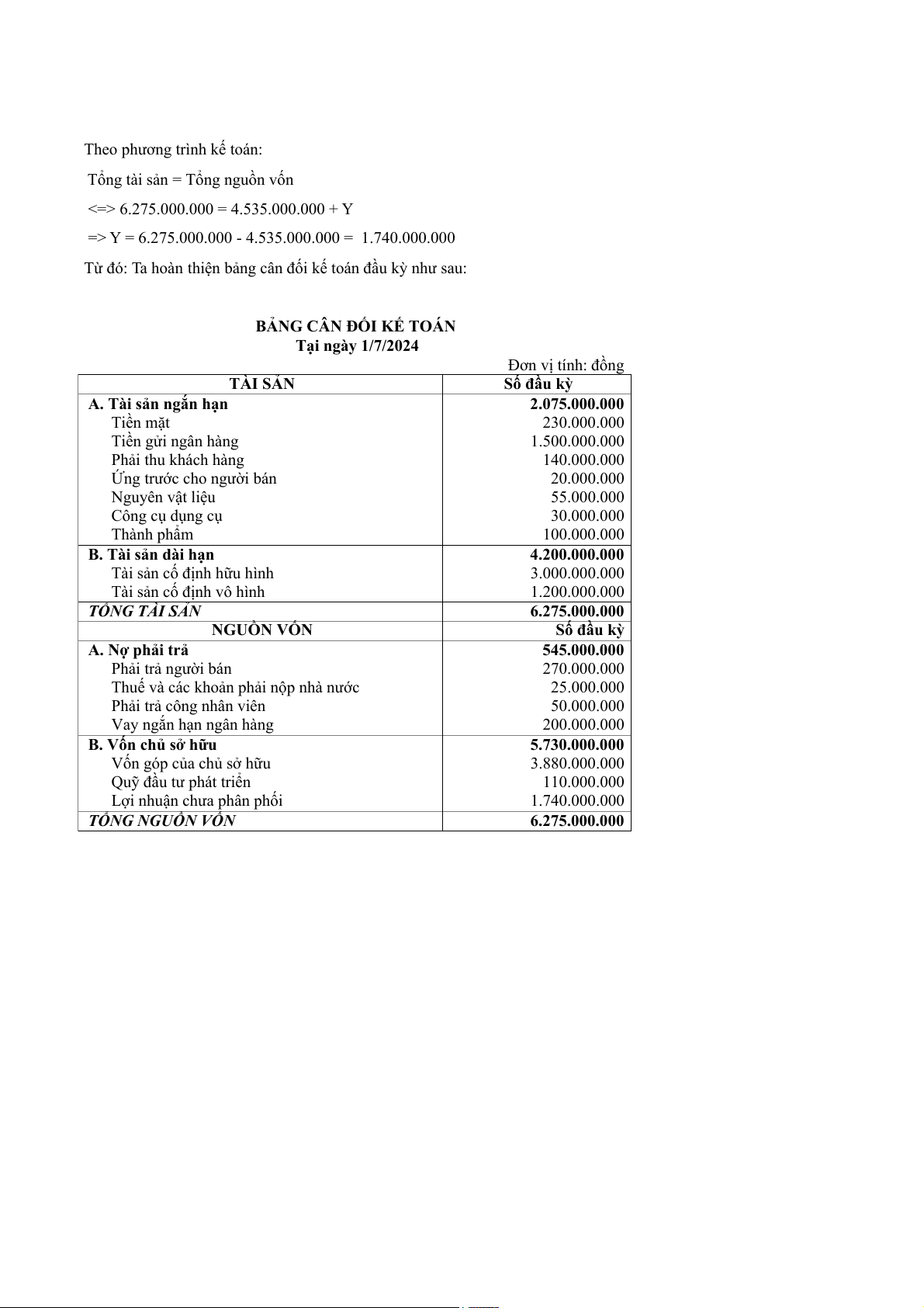 TỔNG NGUỒN VỐN 4.535.000.000 + Y