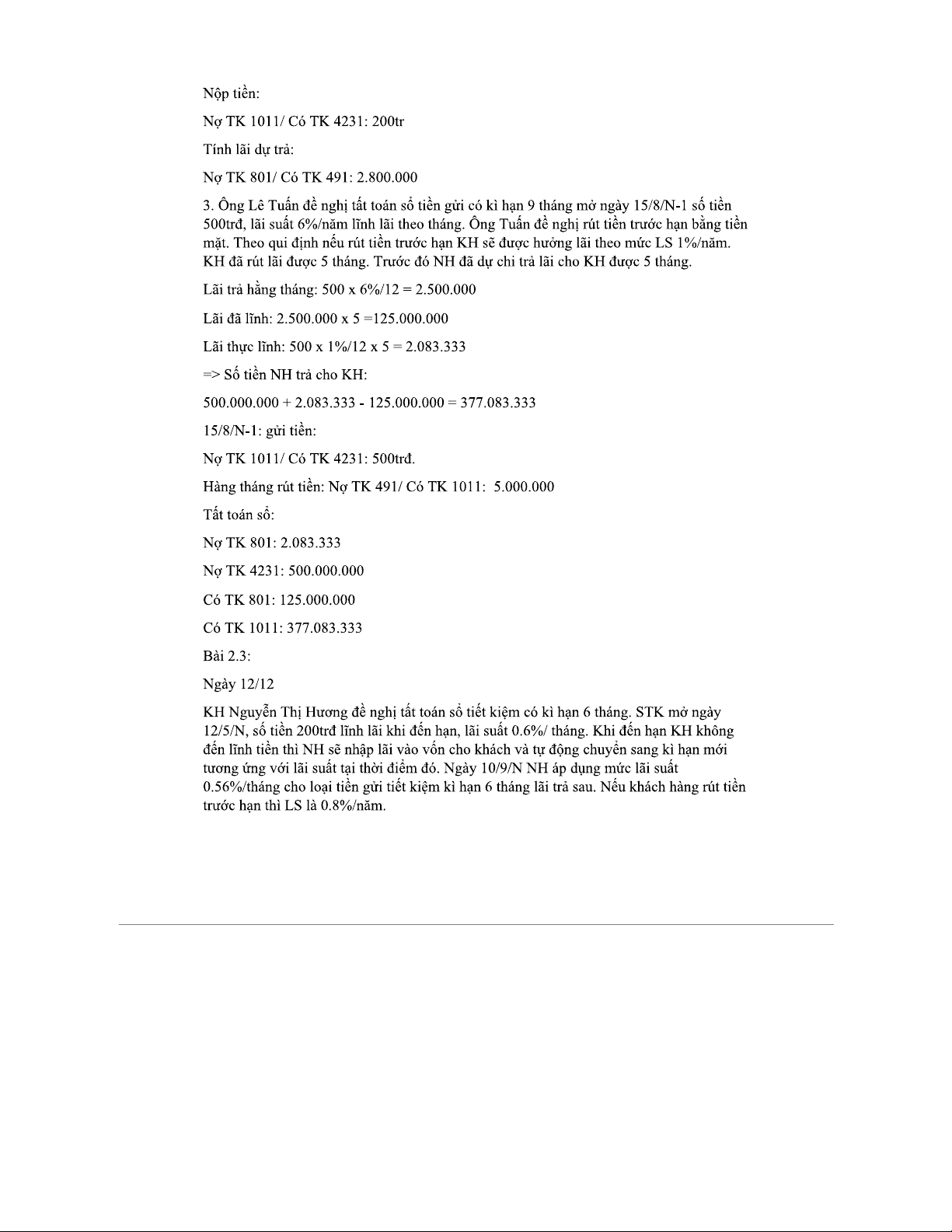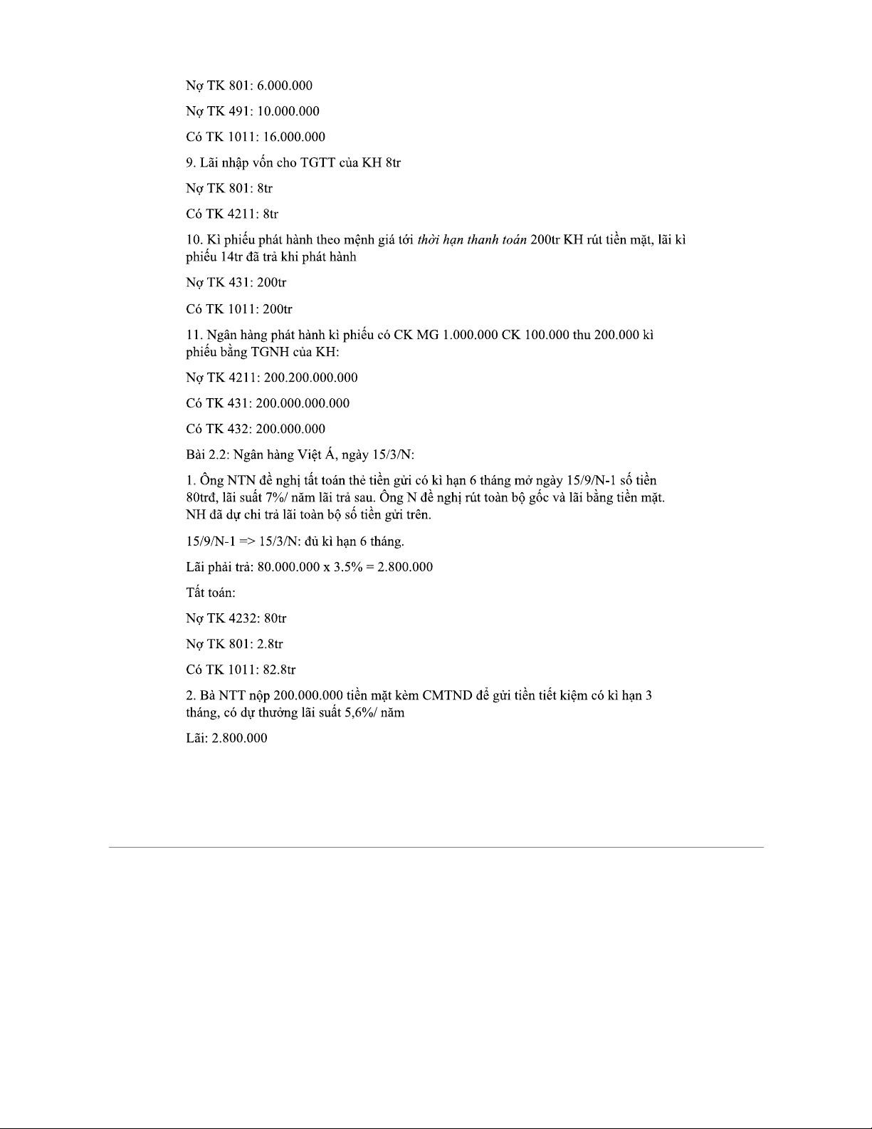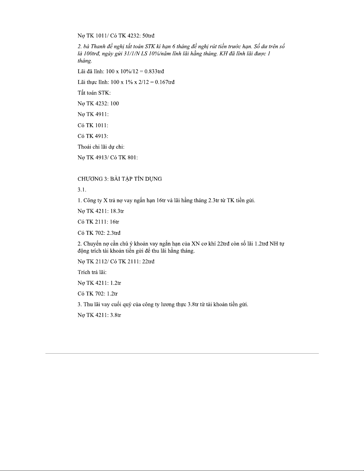 BÀI TẬP KẾ TOÁN NGÂN HÀNG - Bài tập về huy động vốn và tín dụng