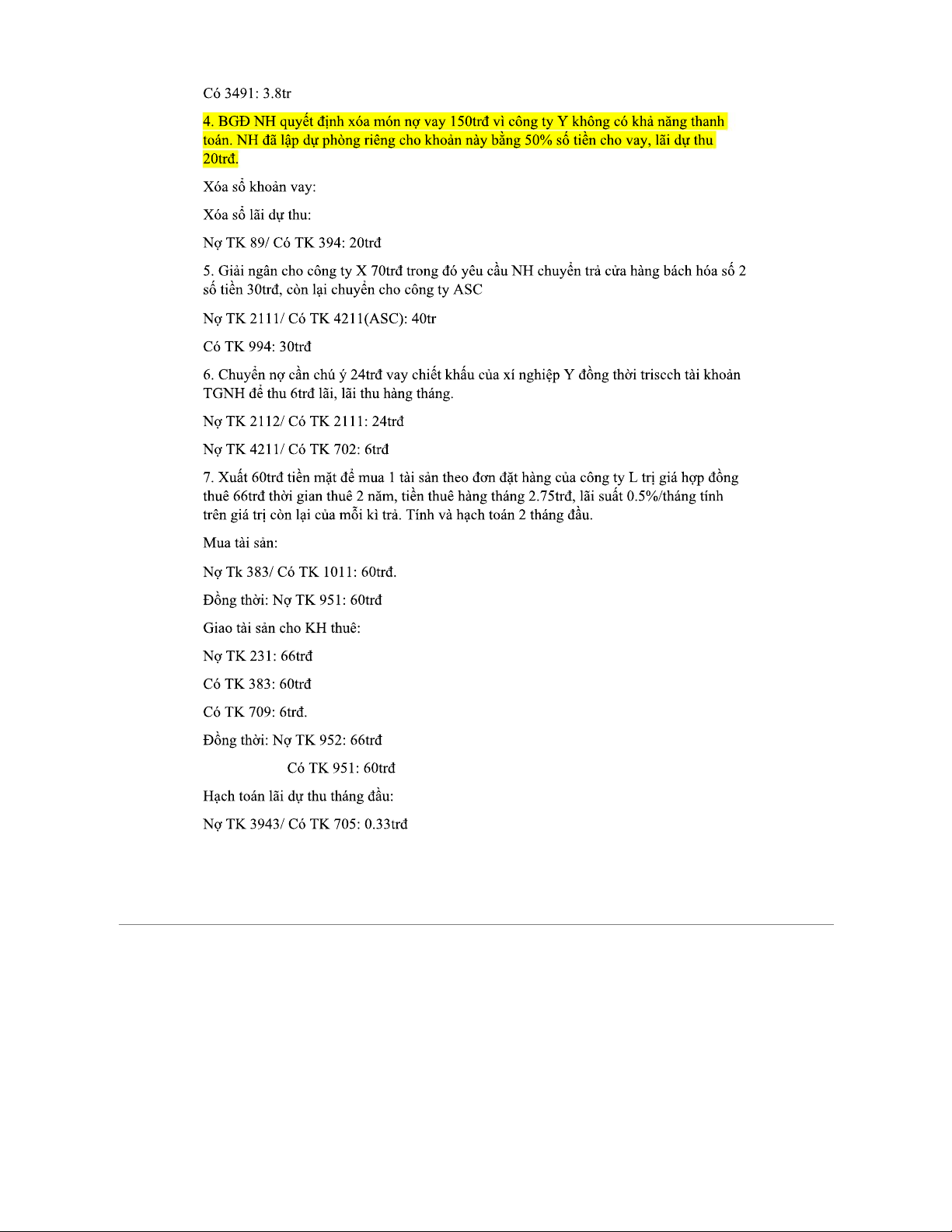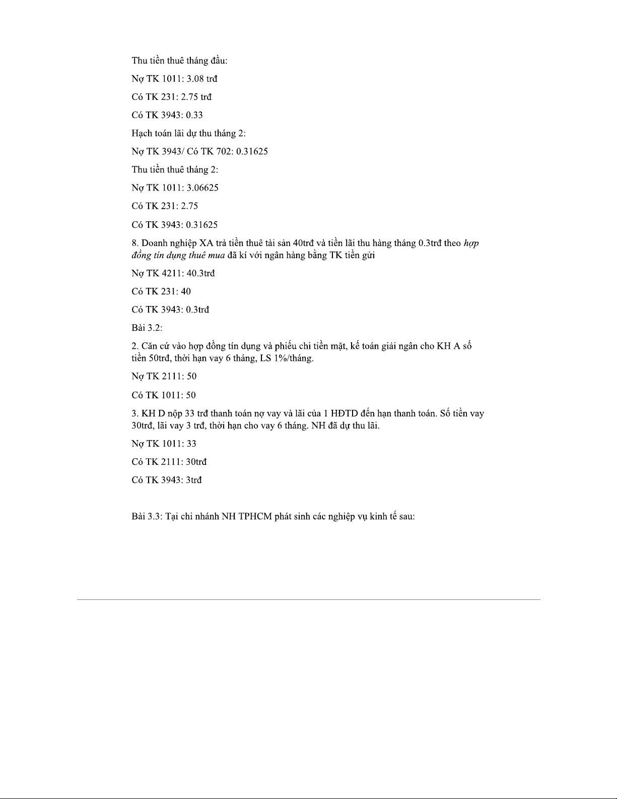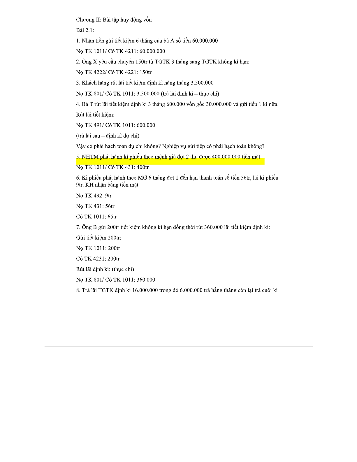 BÀI TẬP KẾ TOÁN NGÂN HÀNG - Bài tập về huy động vốn và tín dụng