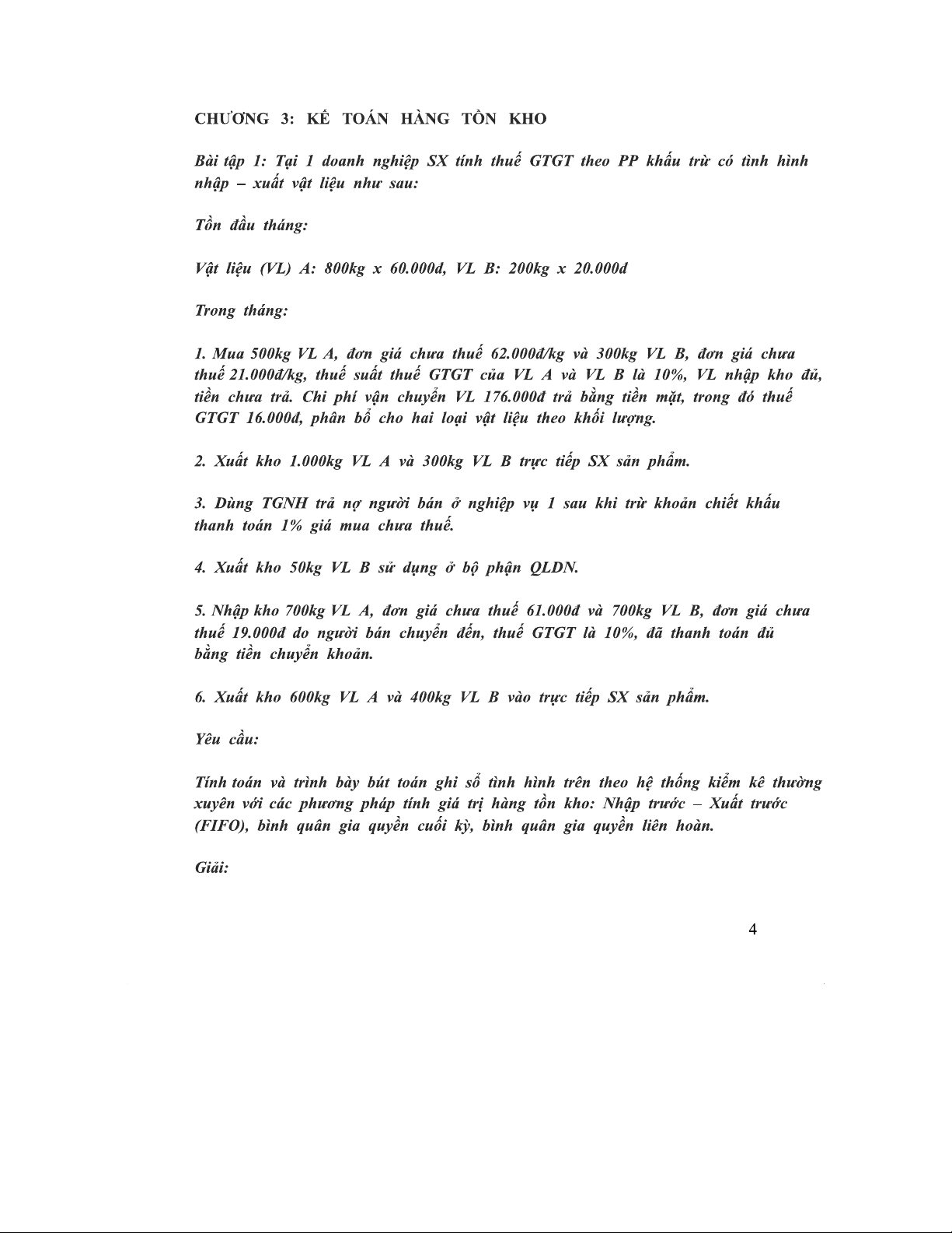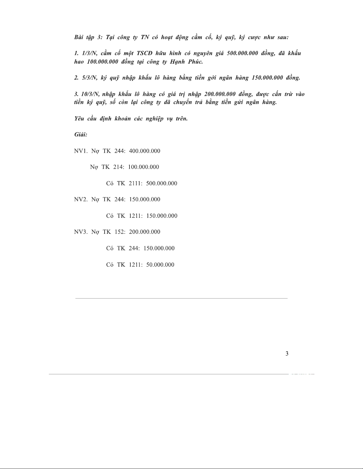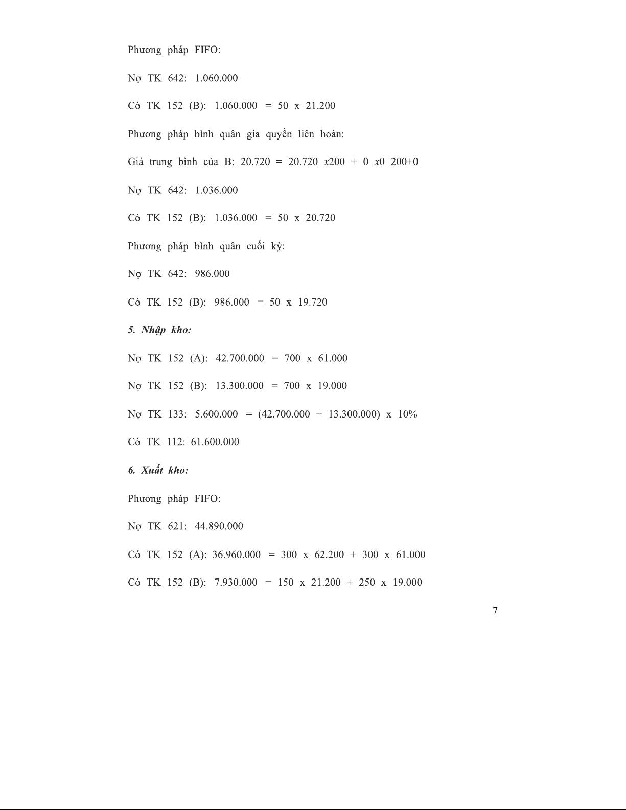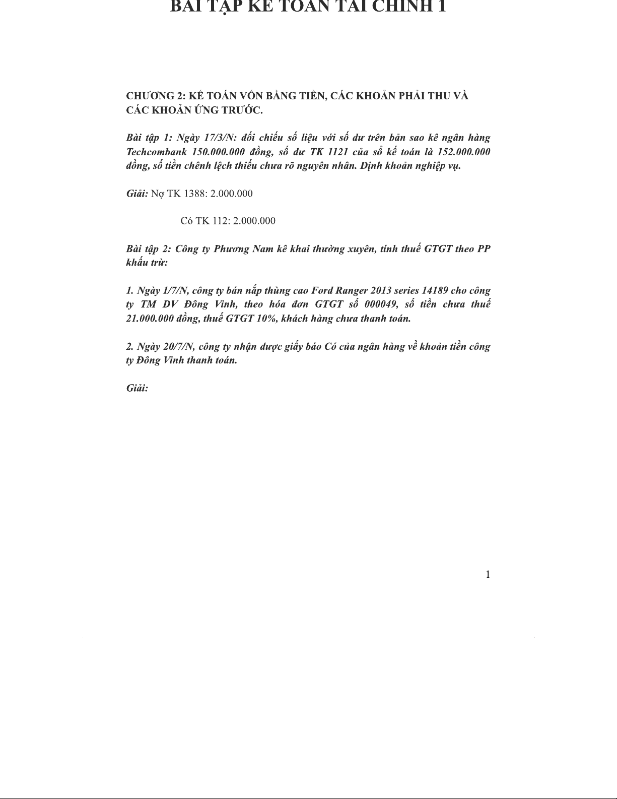 Bài Tập Kế Toán Tài Chính 1: Chương 2-7 Chi Tiết và Định Khoản