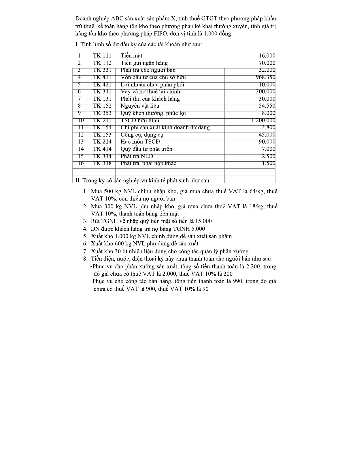 Bài tập kế toán tài chính: Định khoản và báo cáo có đáp án