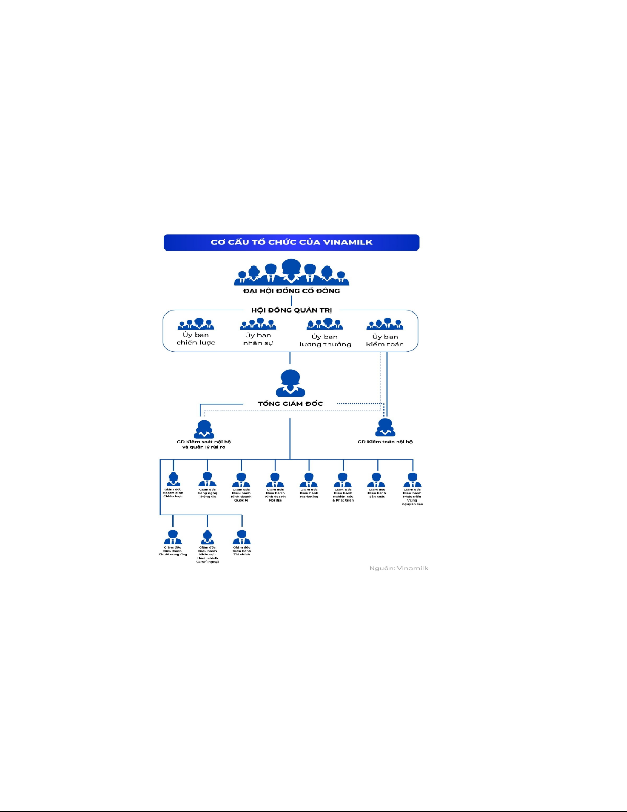 Theo sơ đồ cơ cấu tổ chức Vinamilk, các cấp trong công ty được phân tầng theo thứ tự