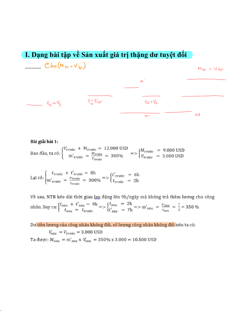 I. Dạng bài tập về Sản xuất giá trị thặng dư tuyệt đối Bài 1