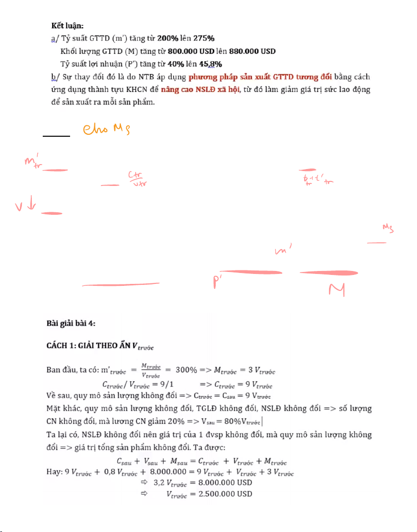 BÀI TẬP VỀ HỌC THUYẾT GIÁ TRỊ THẶNG DƯ