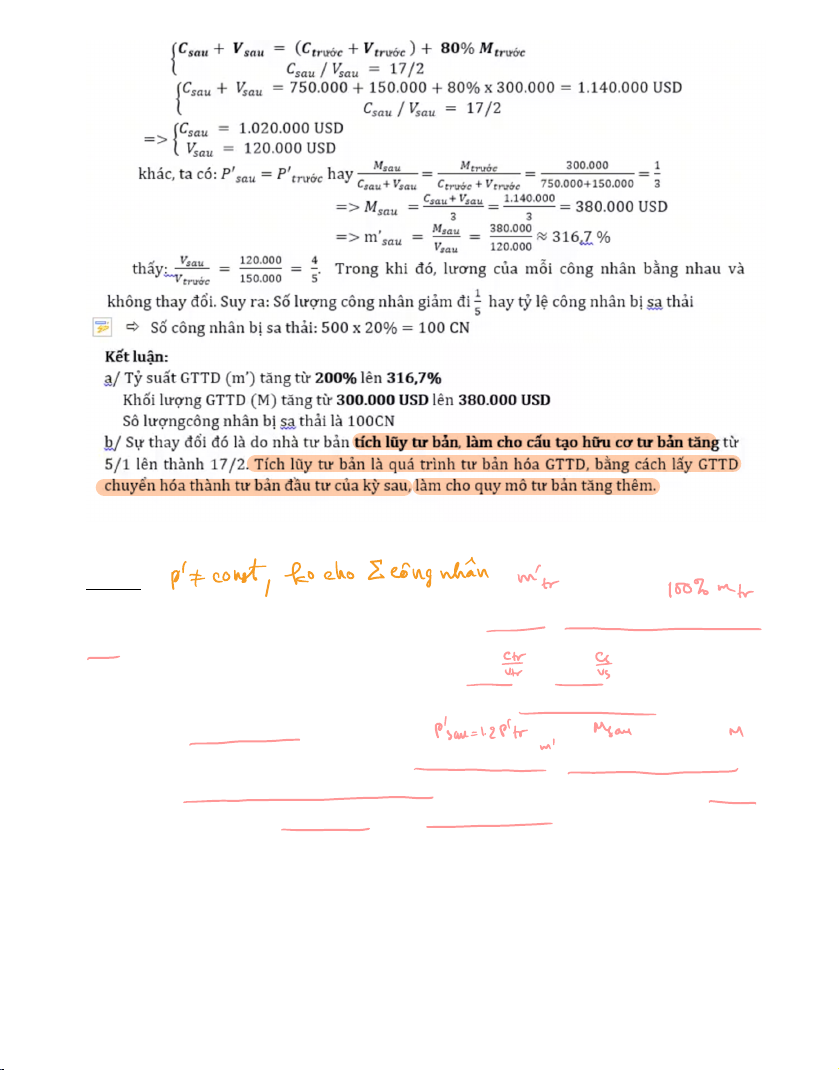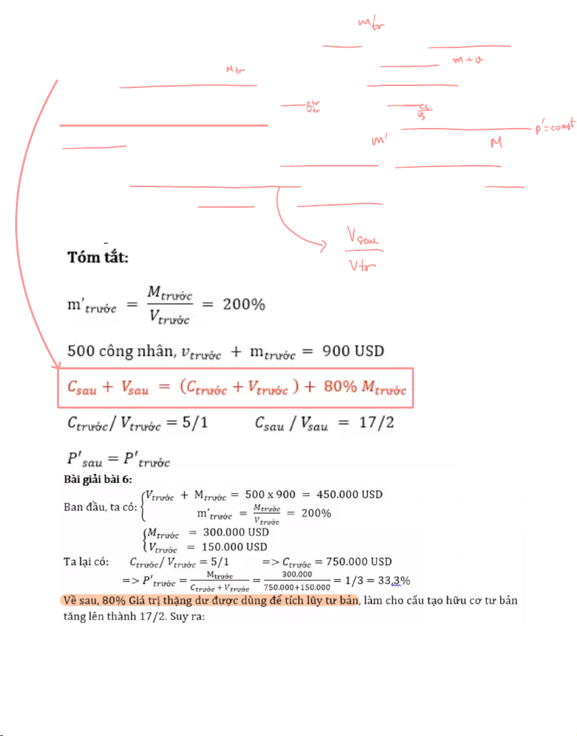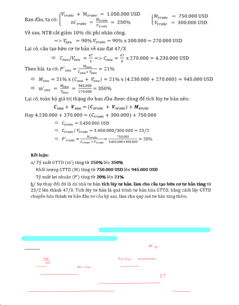 sản xuất 2.000.000 USD với cấu tạo hữu cơ tư bản 4/1, và có trình độ bóc lột 200%.