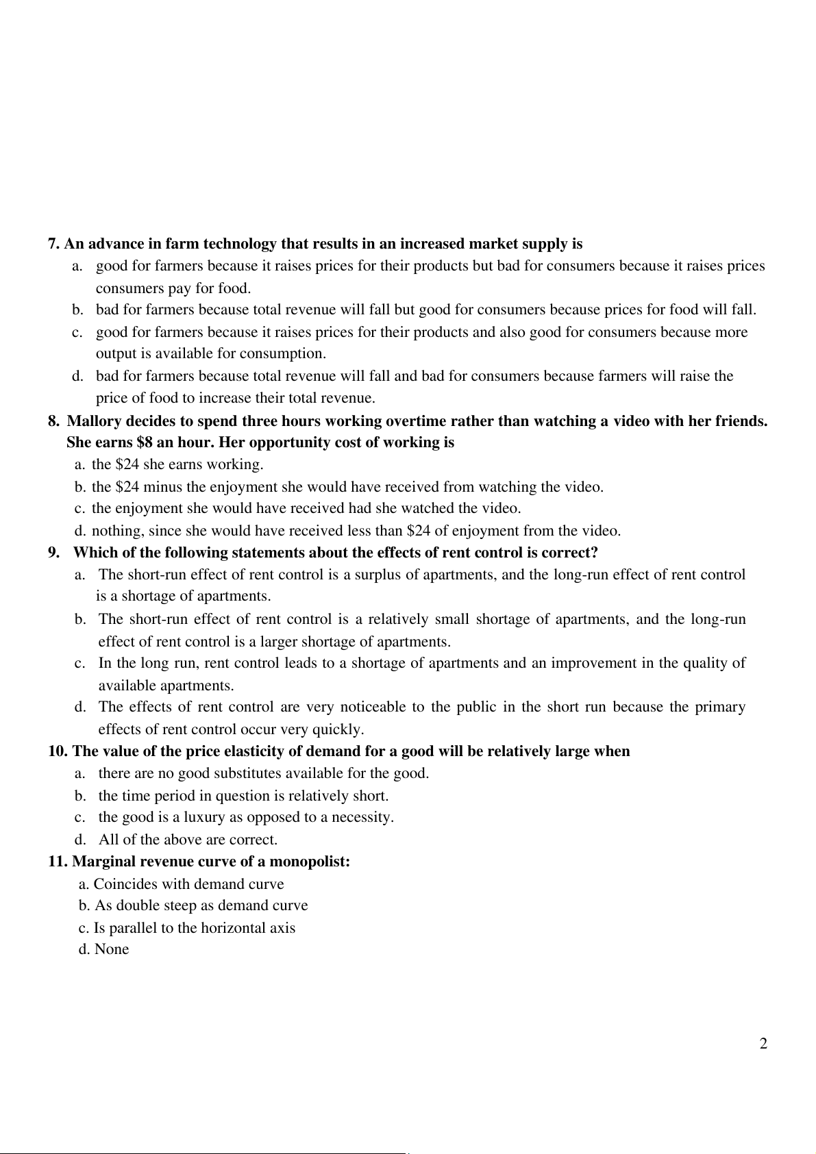 9. Which of the following statements about the effects of rent control is correct?