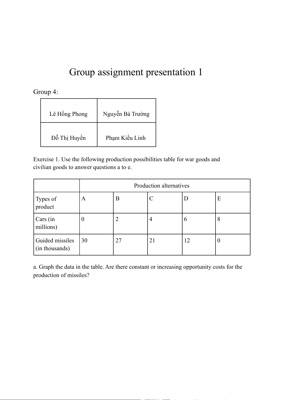 Group assignment presentation 1 Group 4: Lê Hồng Phong Nguyễn Bá Trường Đỗ Thị Huyền Phạm Kiều Linh