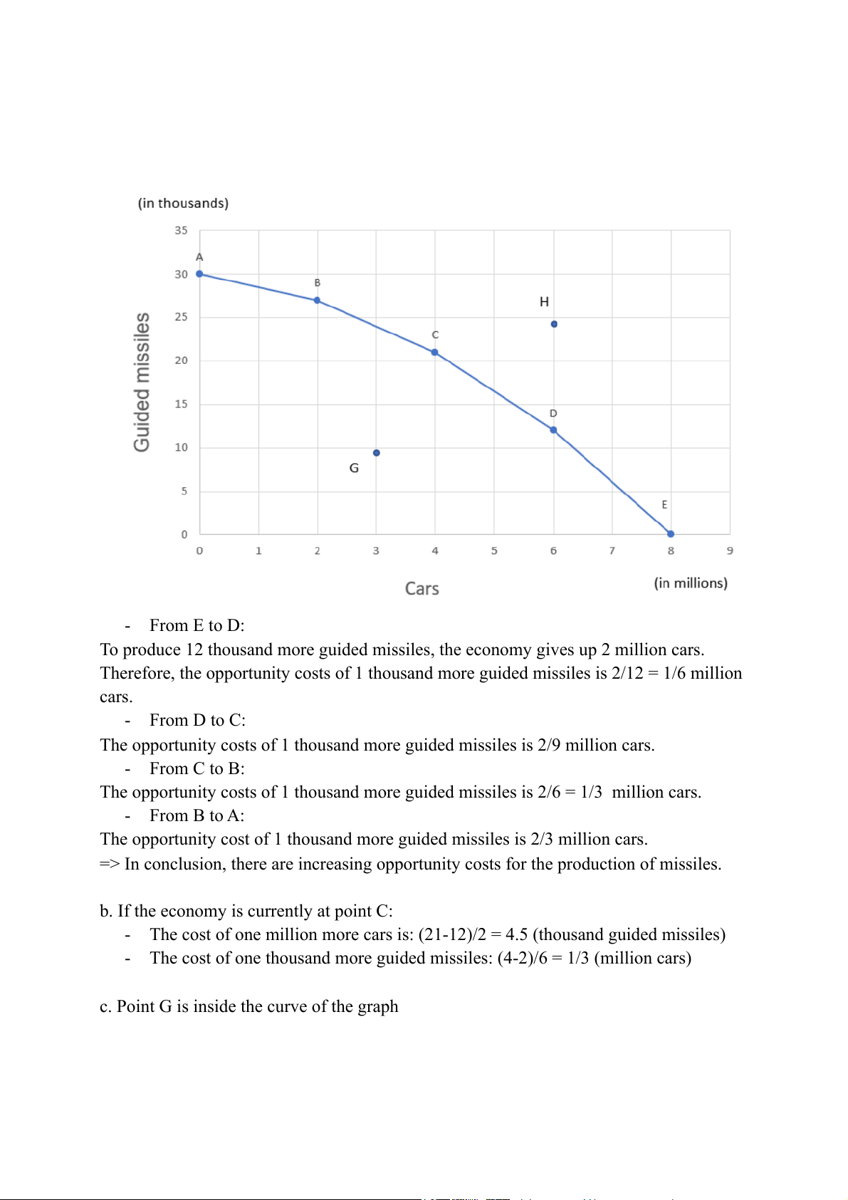 The opportunity costs of 1 thousand more guided missiles is 2/6 = 1/3 million cars. - From B to A:
