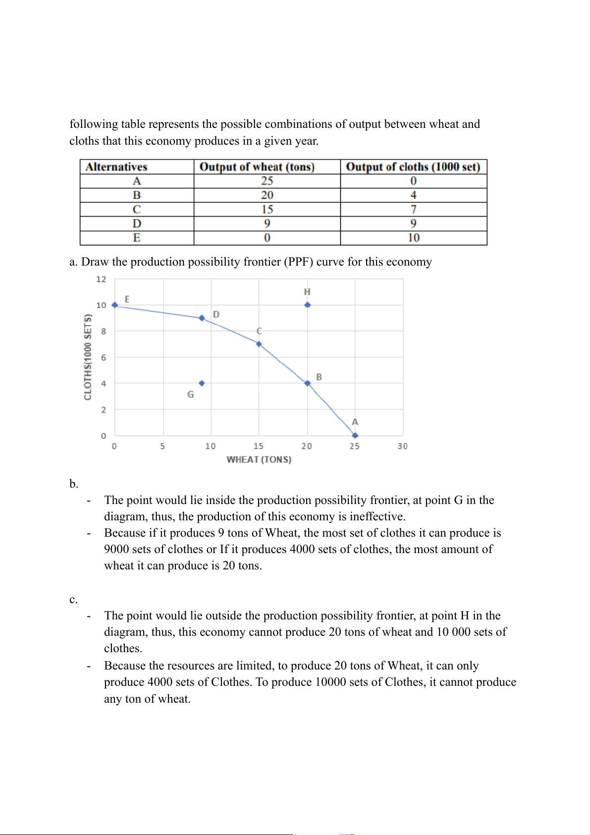 diagram, thus, this economy cannot produce 20 tons of wheat and 10 000 sets of clothes.