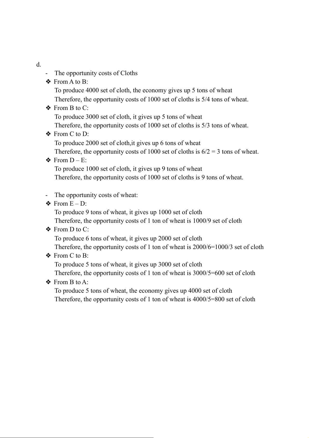 Therefore, the opportunity costs of 1000 set of cloths is 6/2 = 3 tons of wheat. ❖ From D – E: