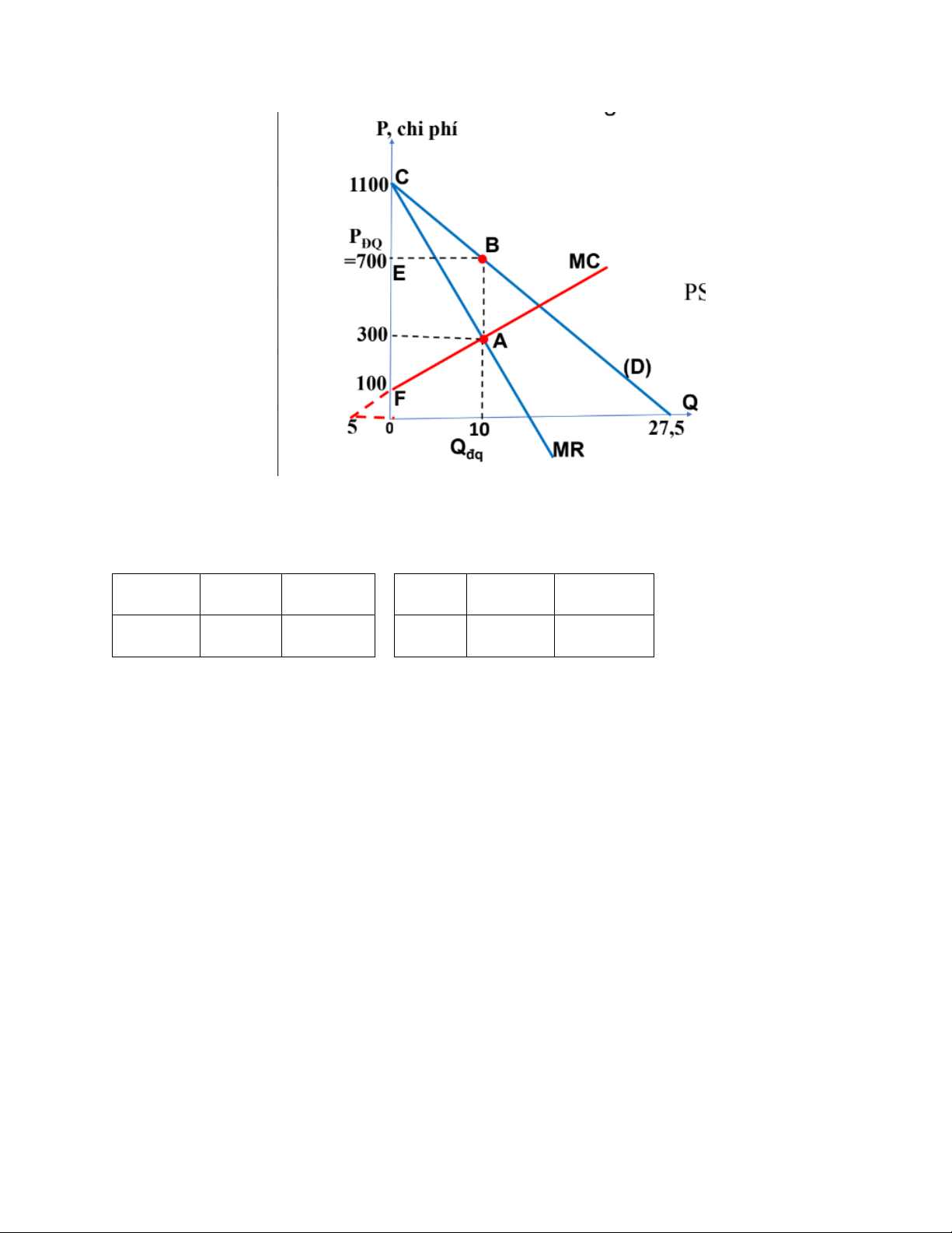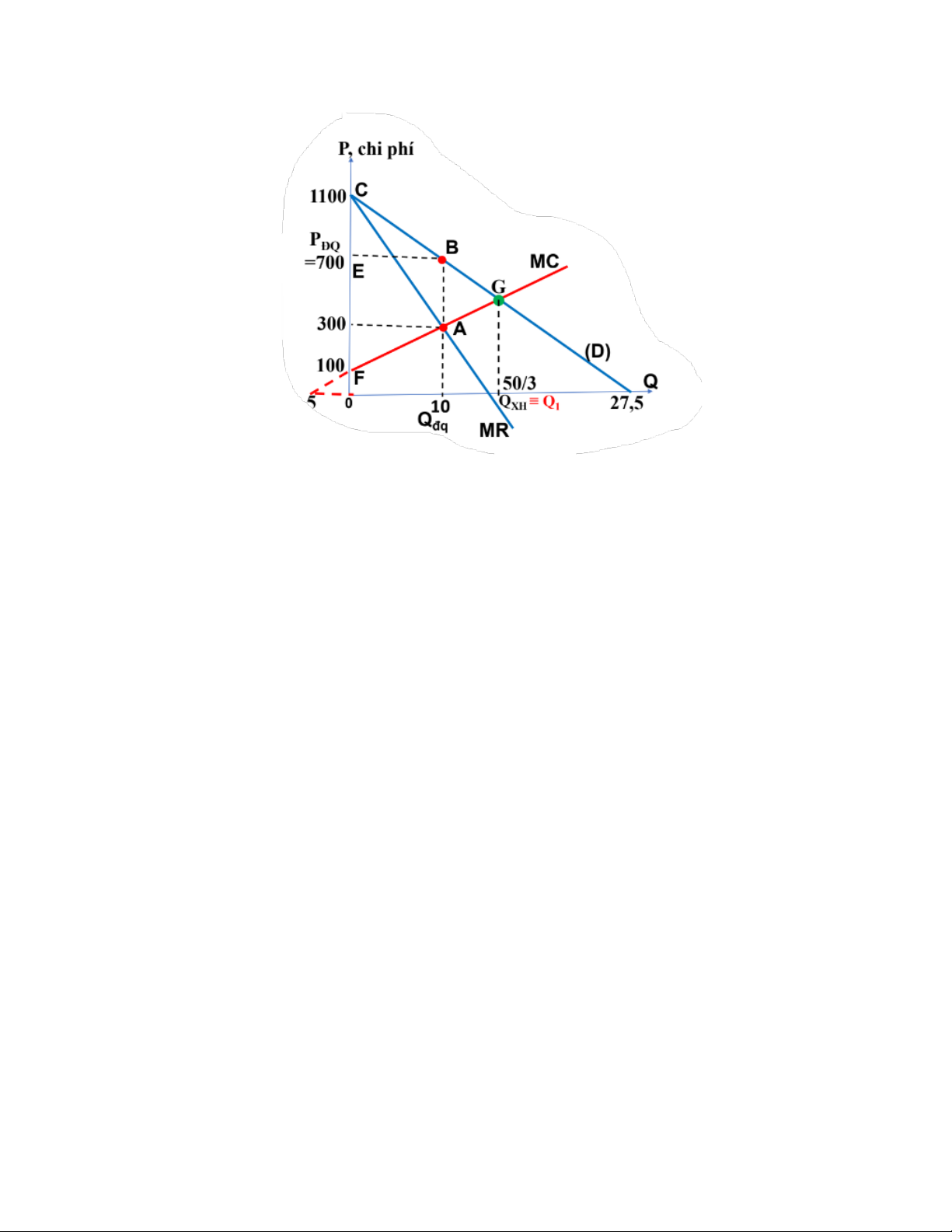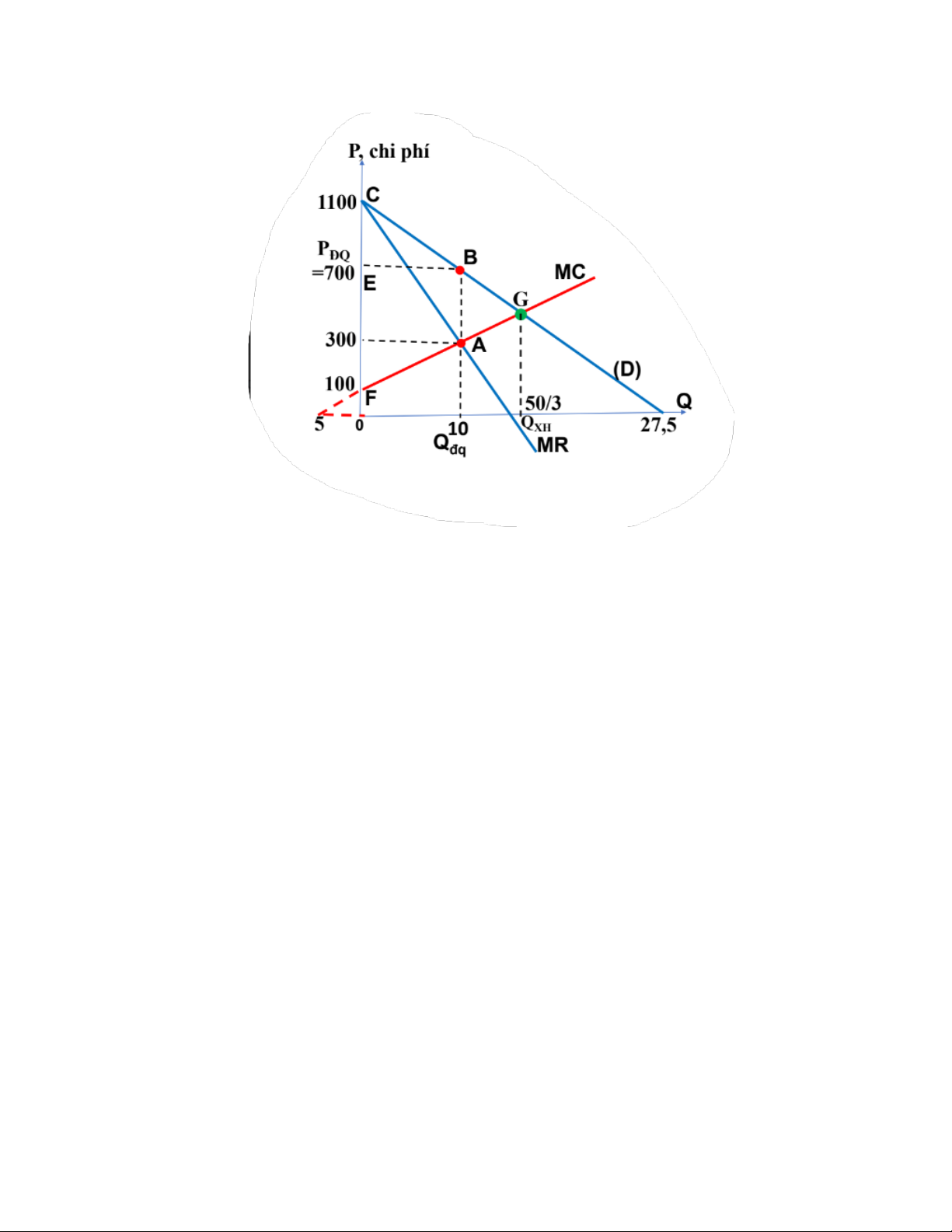 ↔ P = MC ↔ 1100 – 40Q = 20Q + 100 ➔ Q1 = 50/3 Các P Cấp 1 = CG