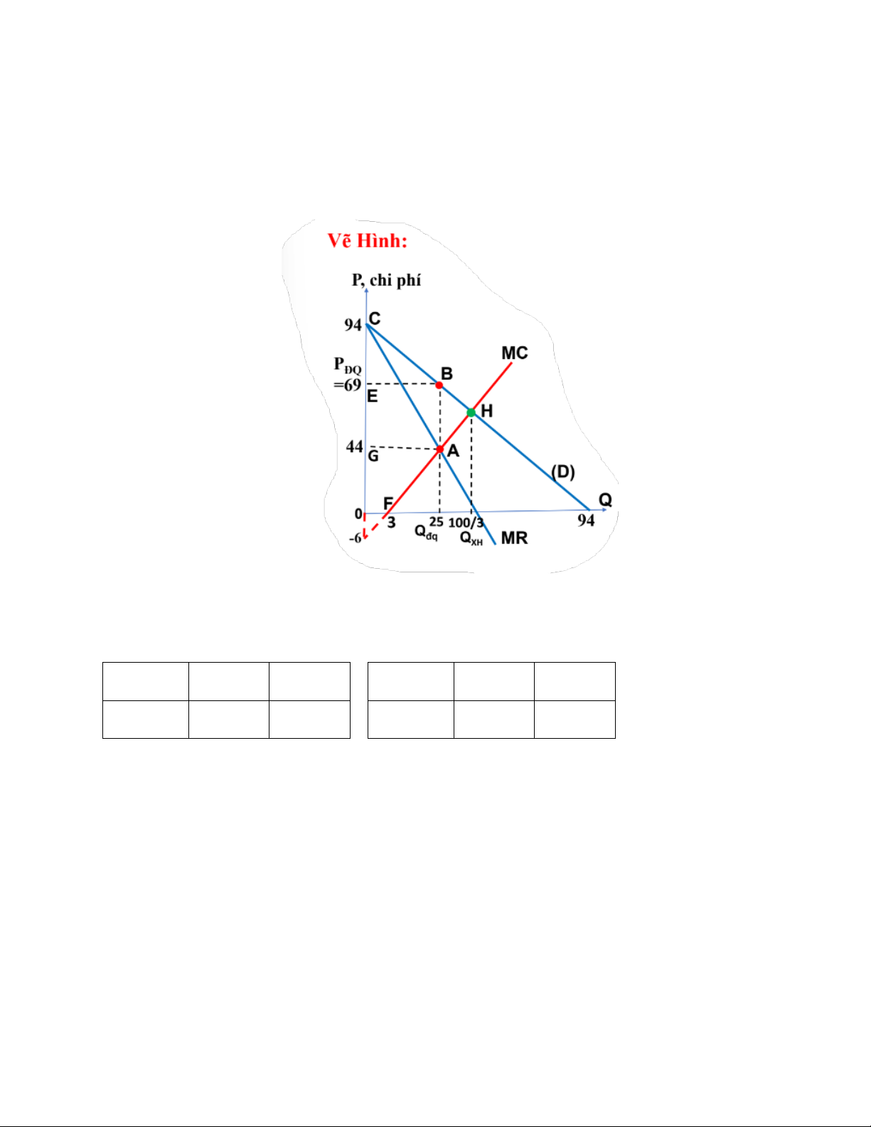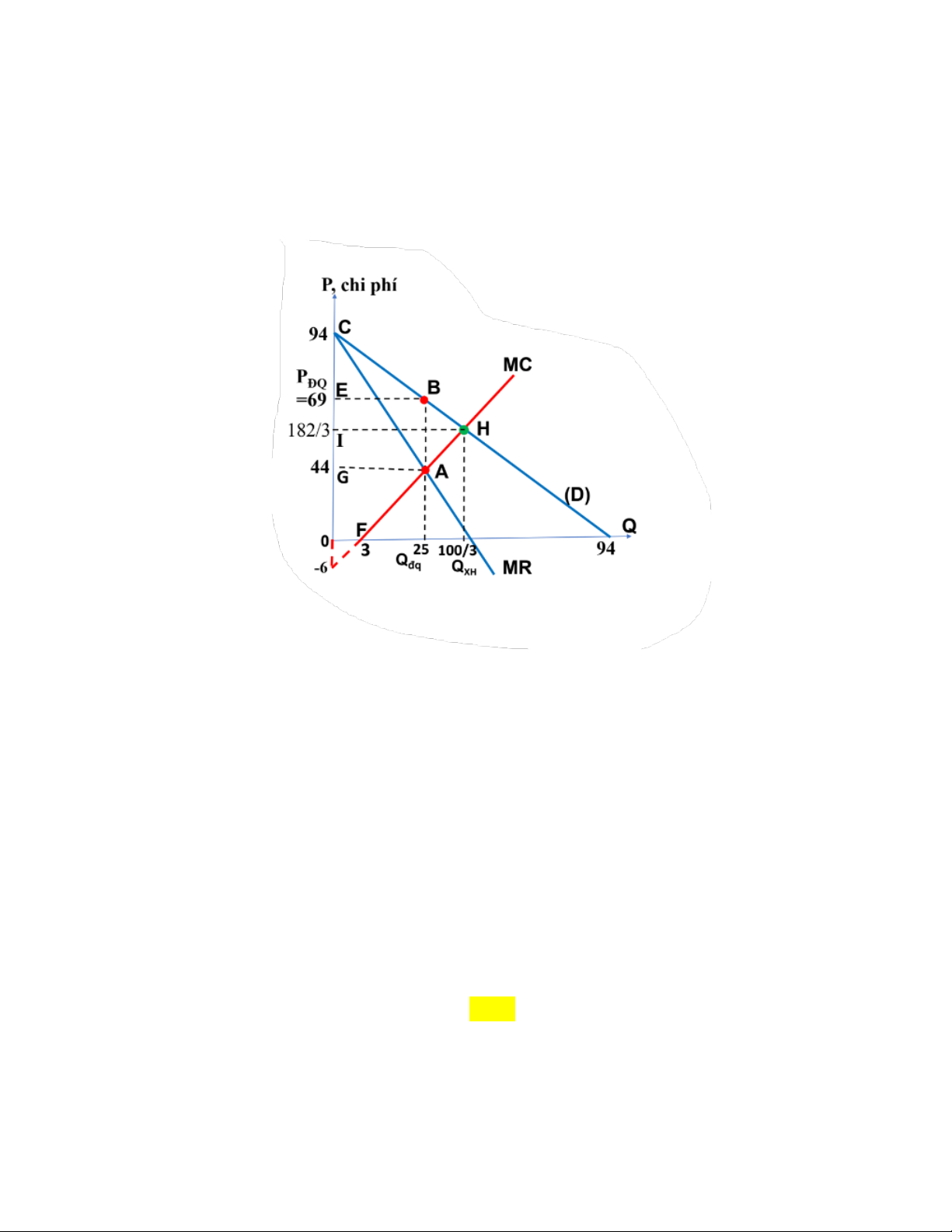 ↔ P = MC ↔ 94 – Q = 2Q - 6 ➔QXH = 100/3 ➔ P = 94 – 100/3 = 182/3 CS = S∆CIH =........... PS = SIOFH = ...........