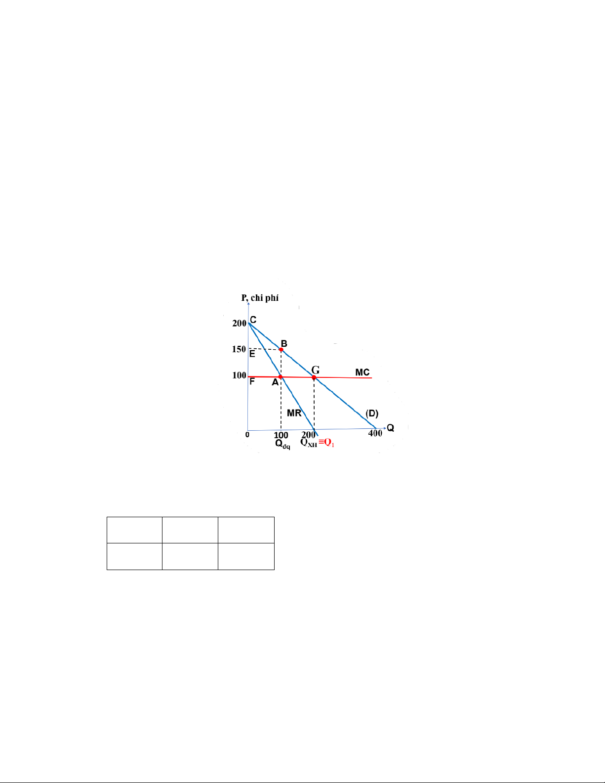 ↔ P = MC ↔ 200 – 0,5Q = 100 ➔ Q1 = 200 Các Pcấp1 = CG