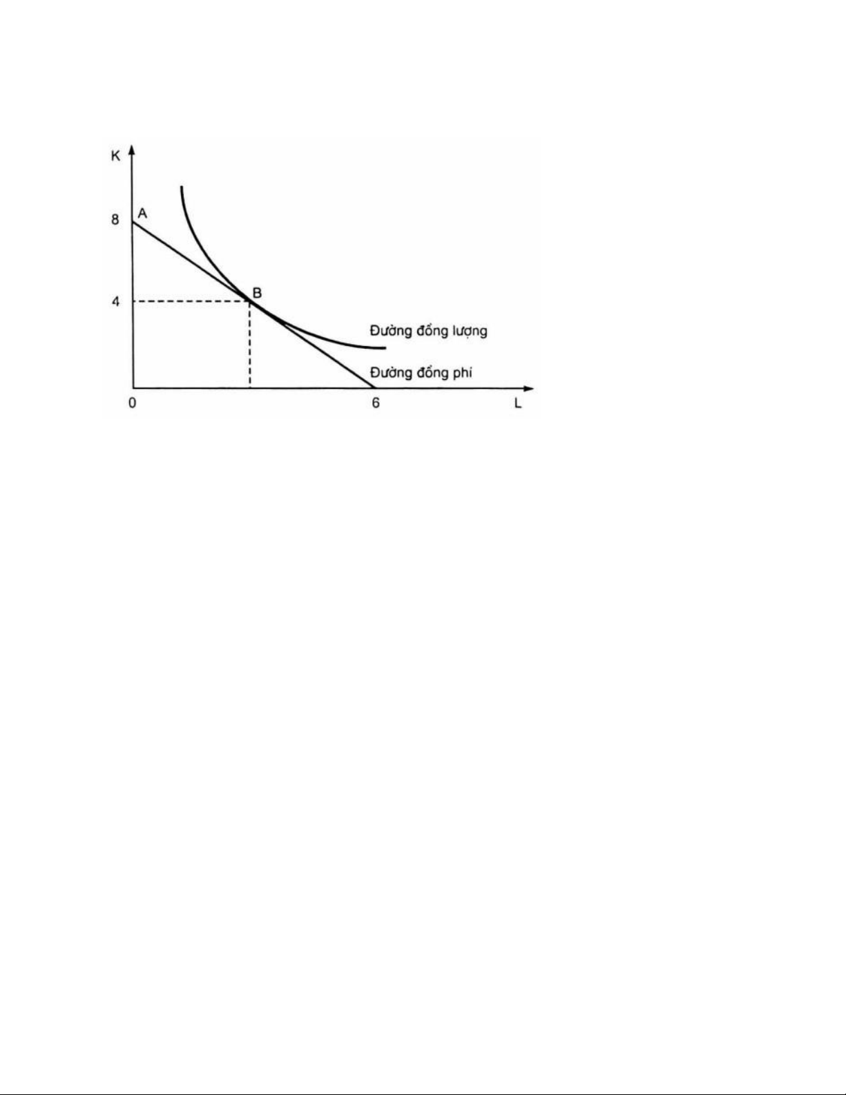 Câu 4. Cho hình vẽ với điểm lựa chọn tối ưu các đầu vào là B. Biết rằng chi phí của hãng