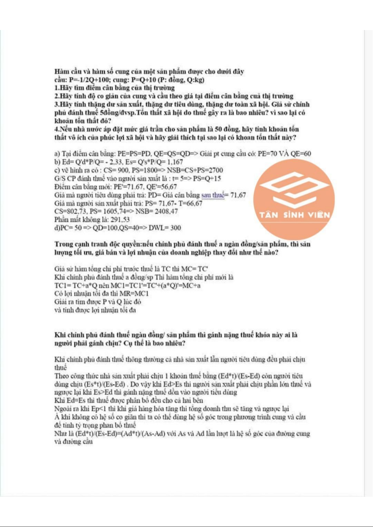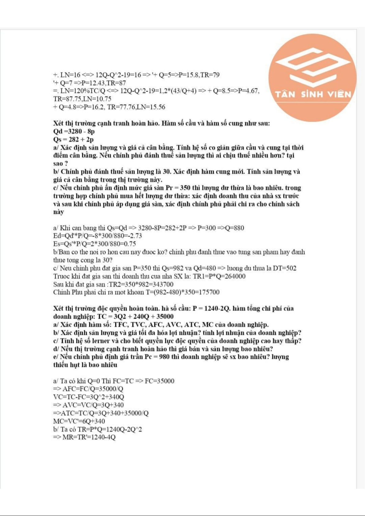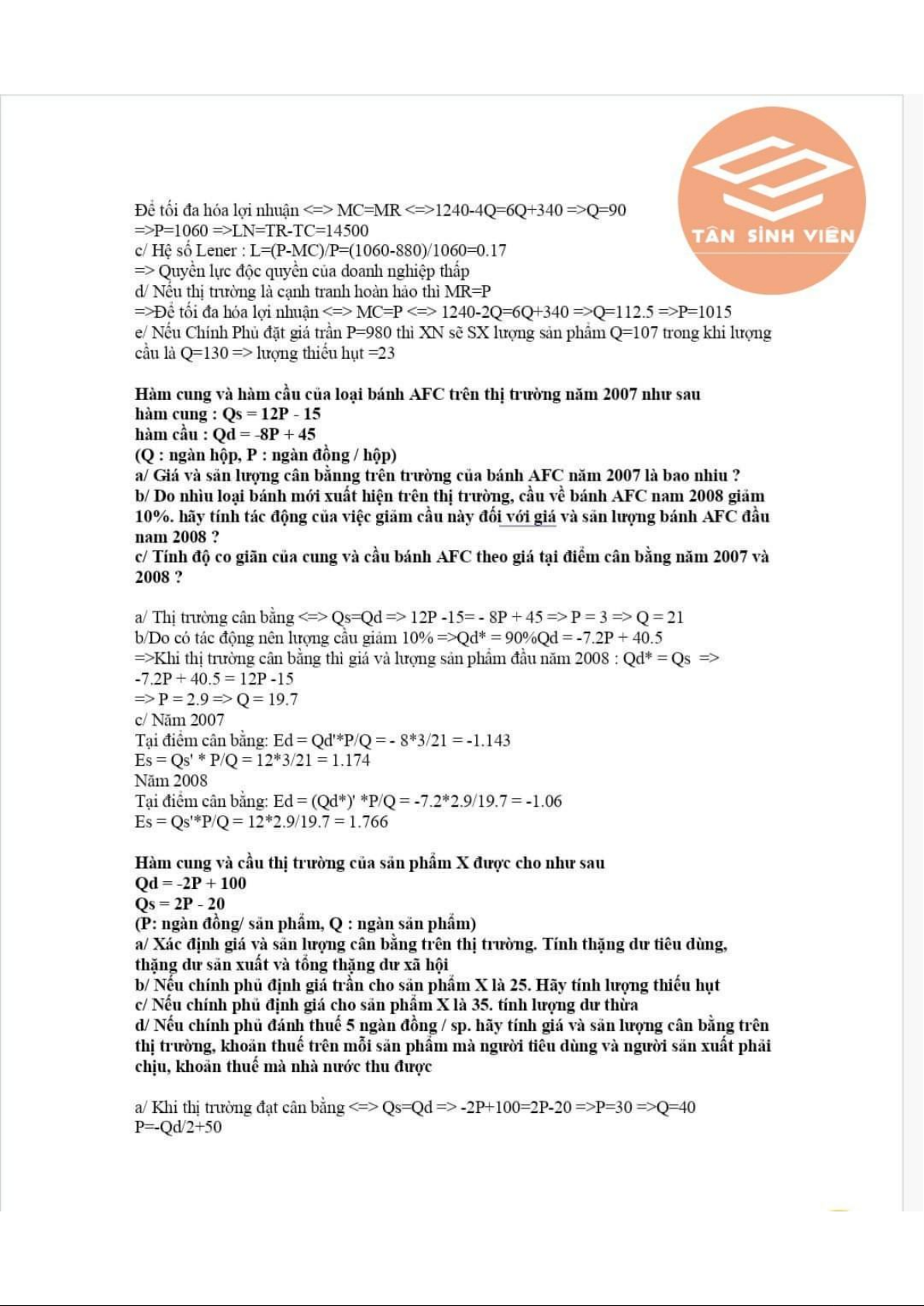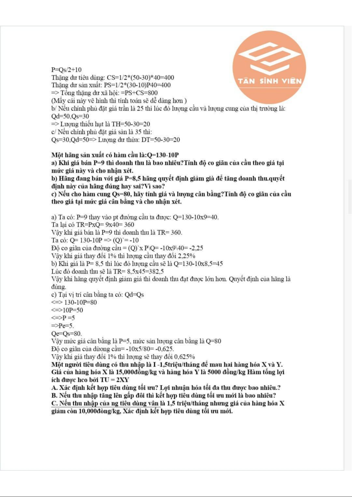 BÀI TẬP KINH TẾ VI MÔ: Hướng Dẫn và Giải Quyết Vấn Đề
