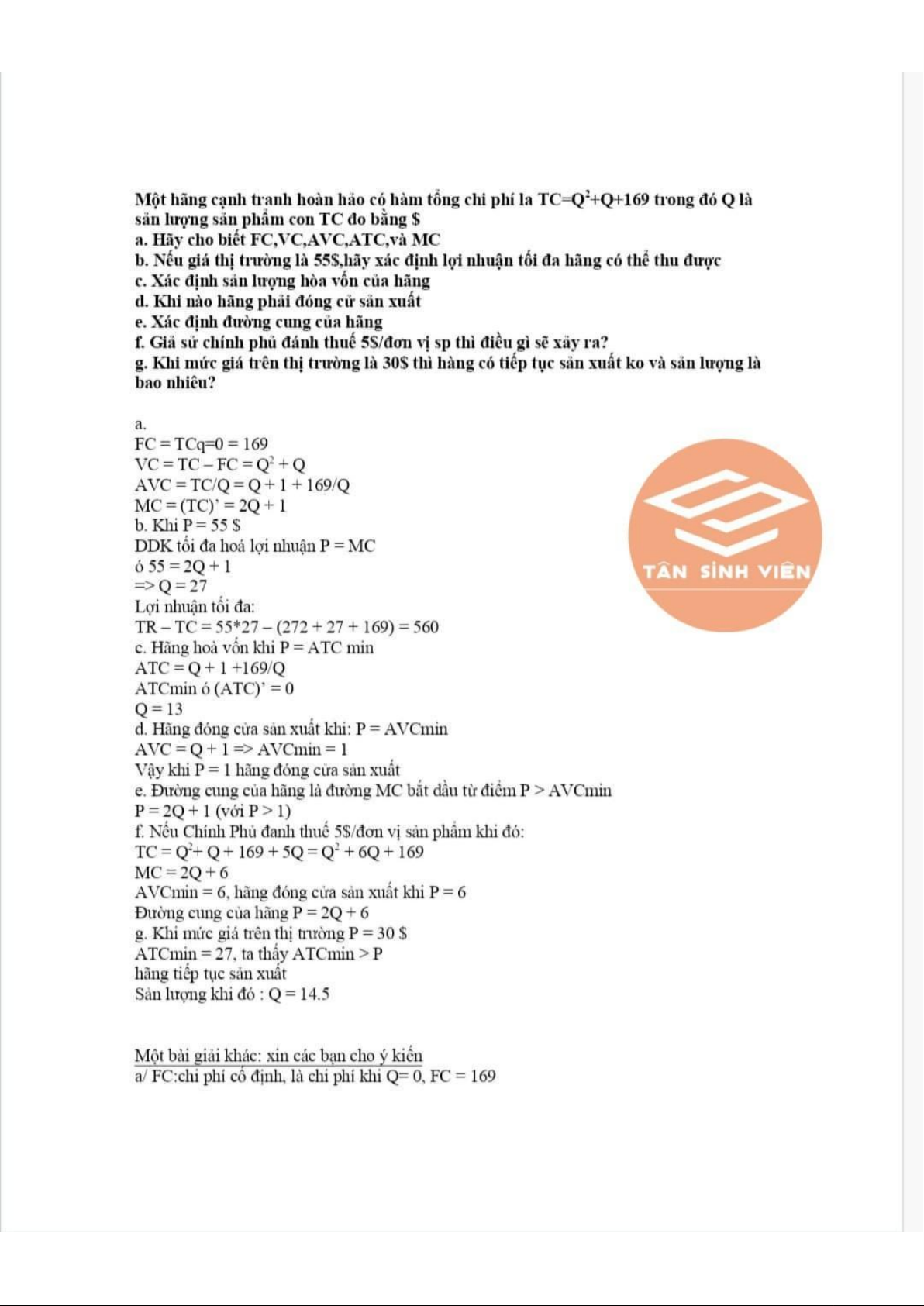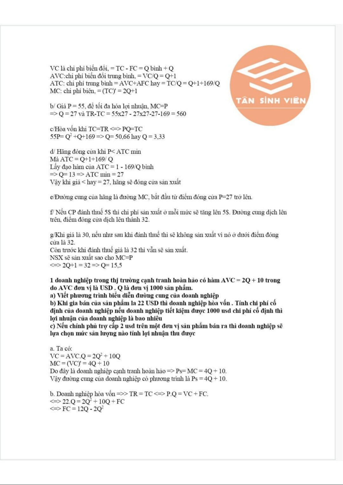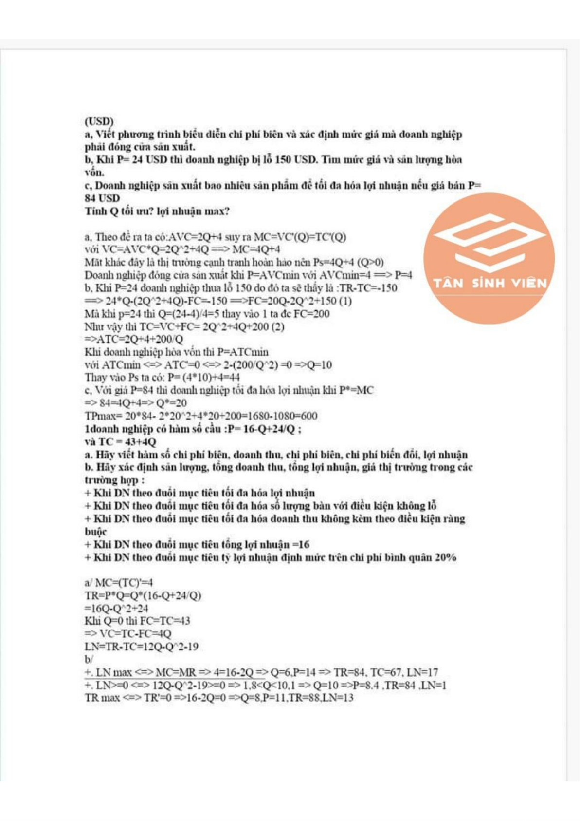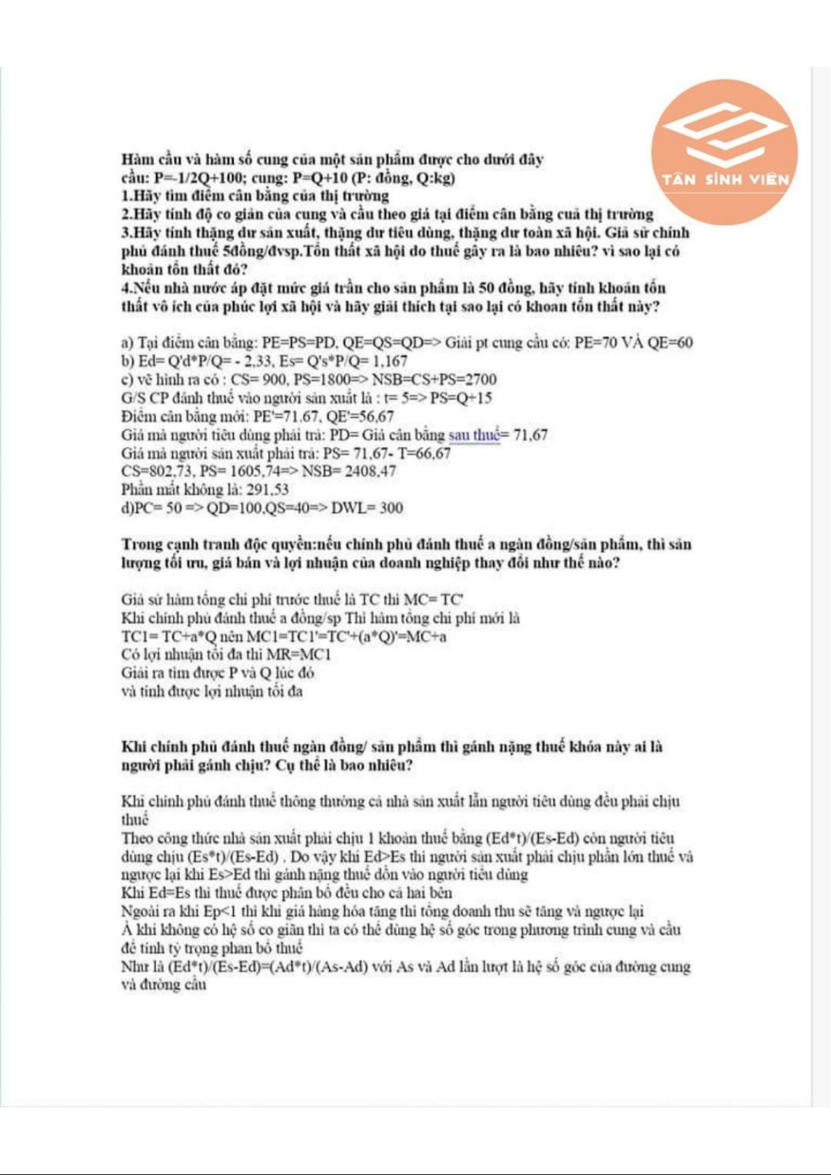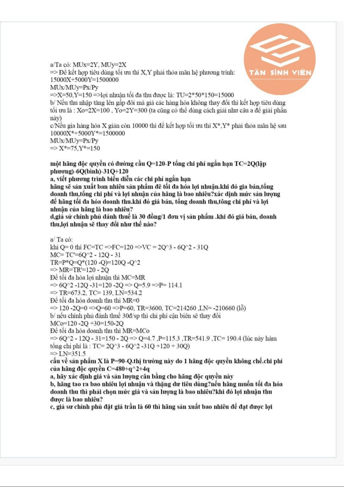 BÀI TẬP KINH TẾ VI MÔ: Hướng Dẫn và Giải Quyết Vấn Đề
