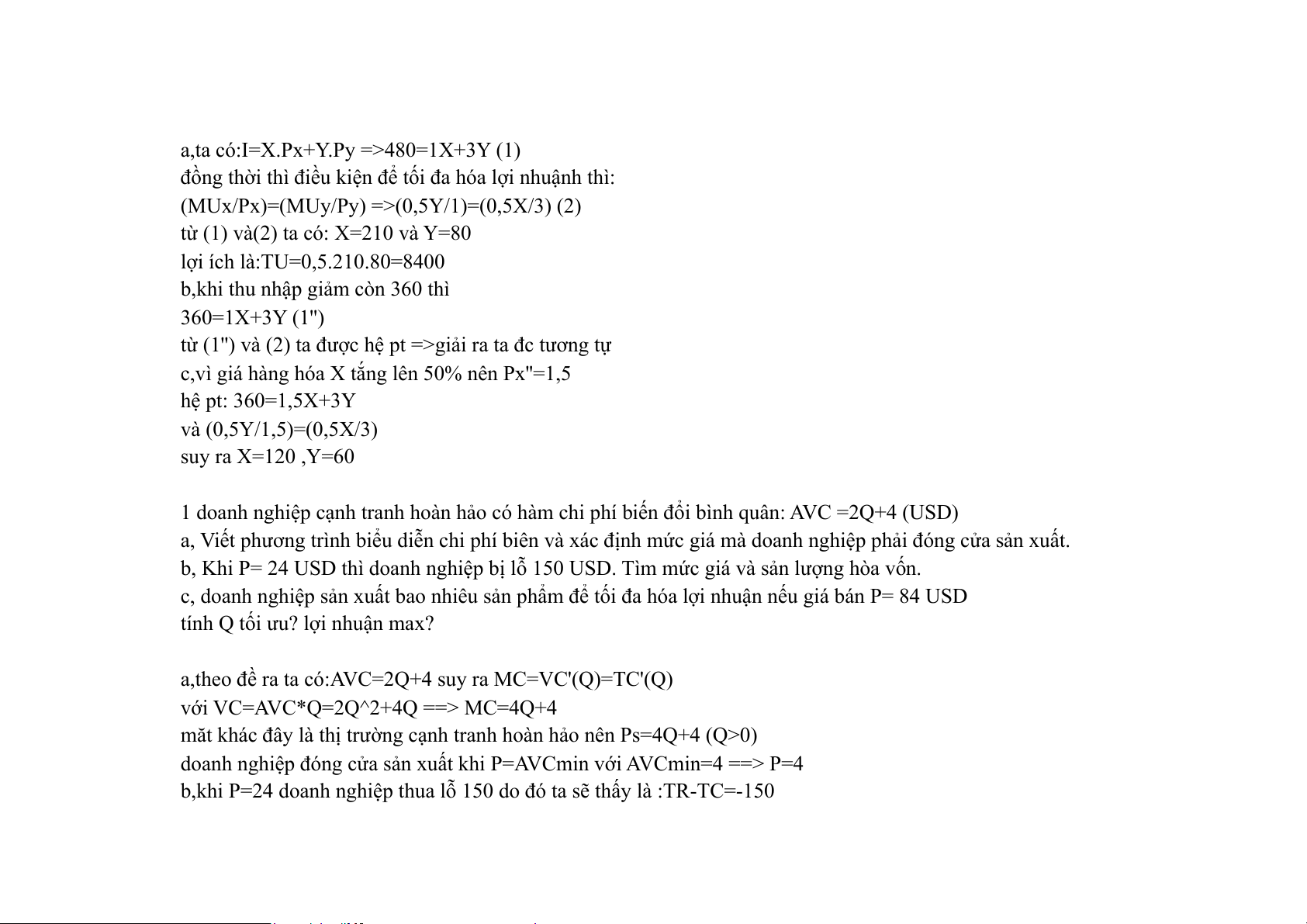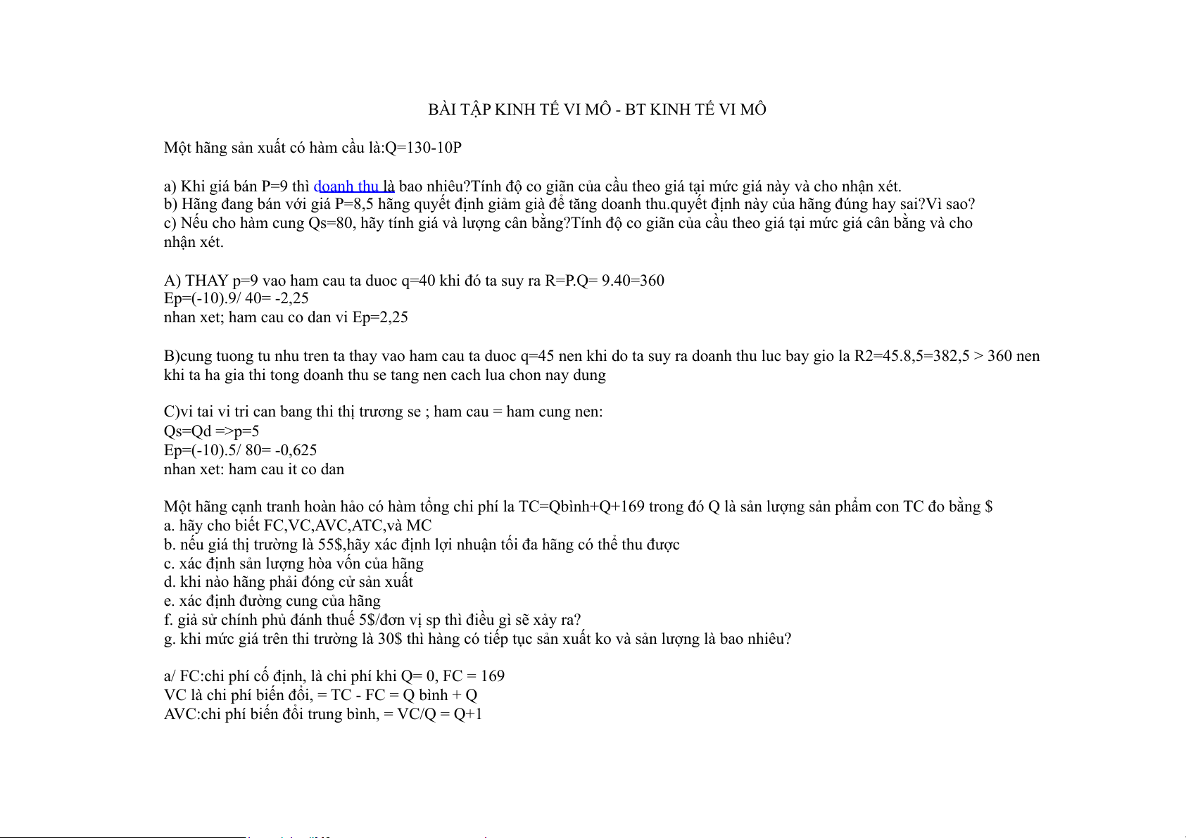 BÀI TẬP KINH TẾ VI MÔ - BT KINH TẾ VI MÔ