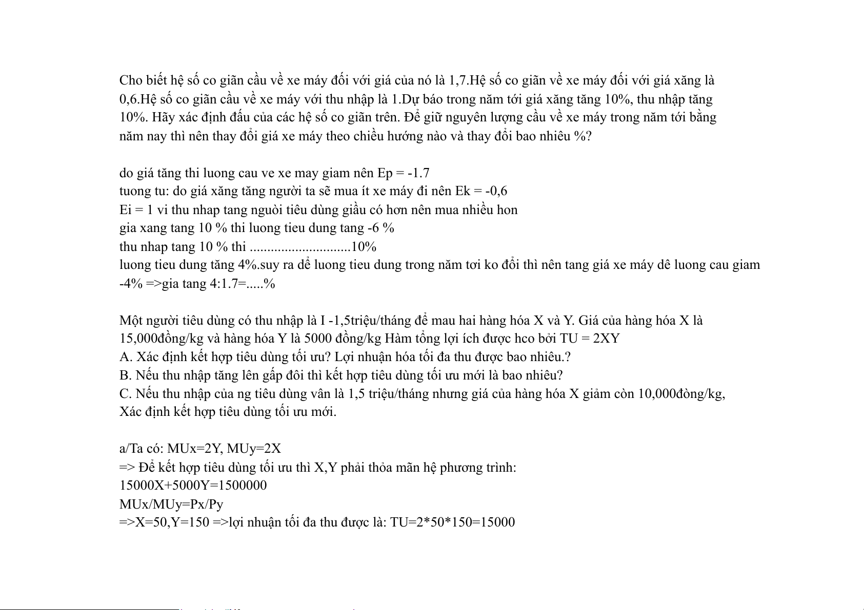 Cho biết hệ số co giãn cầu về xe máy đối với giá của nó là 1,7.Hệ số co giãn về xe máy đối với giá xăng là