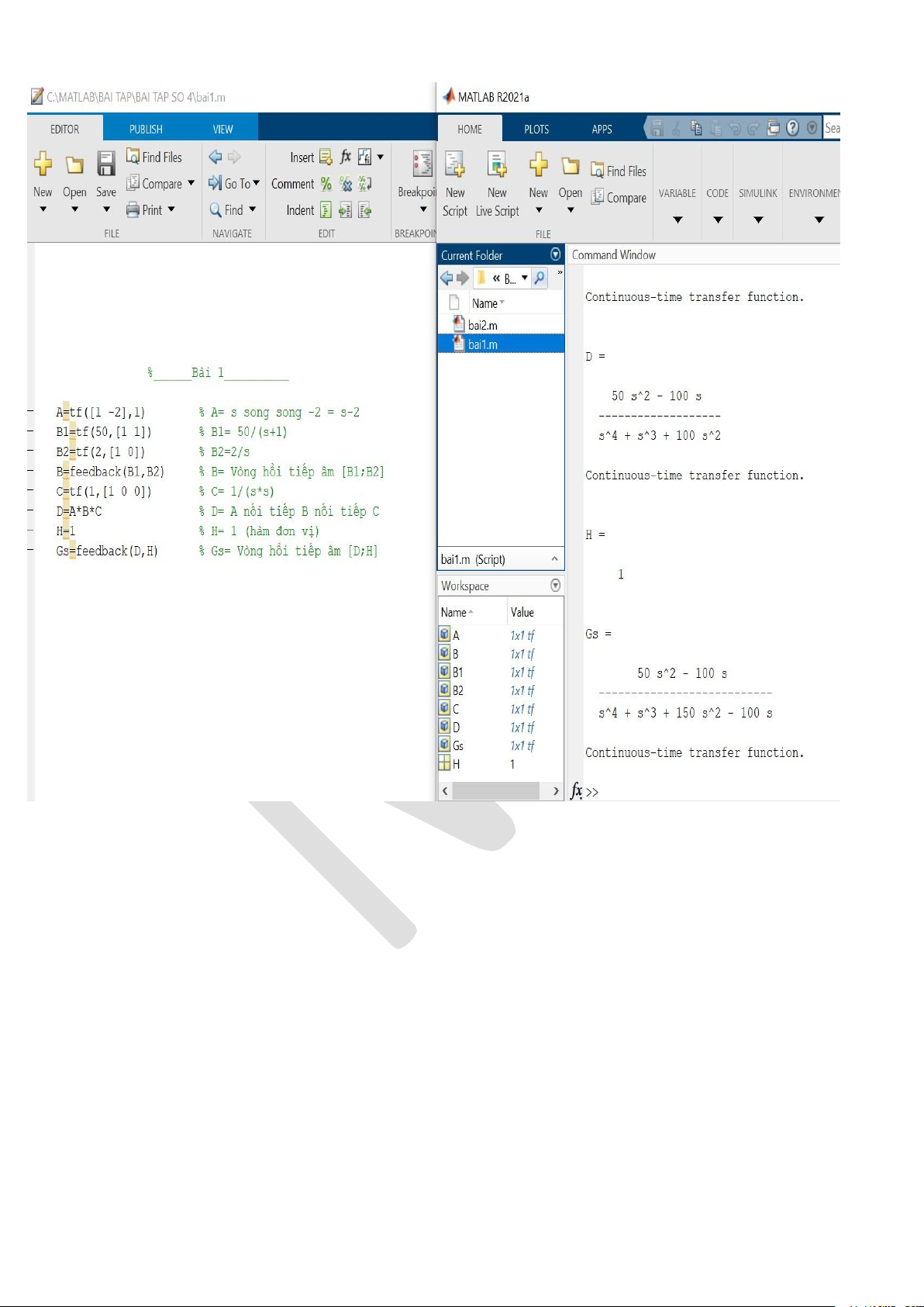 BÀI 4: TÍNH HÀM TRUYỀN TƯƠNG ĐƯƠNG CỦA HỆ THỐNG Câu 1: R(s) C(s) 1 50� s-2 �² �2 + � + 100 R(s) 50�² − 100� C(s) �⁴ + �³ + 100�² R(s) C(s) 50�² − 100�