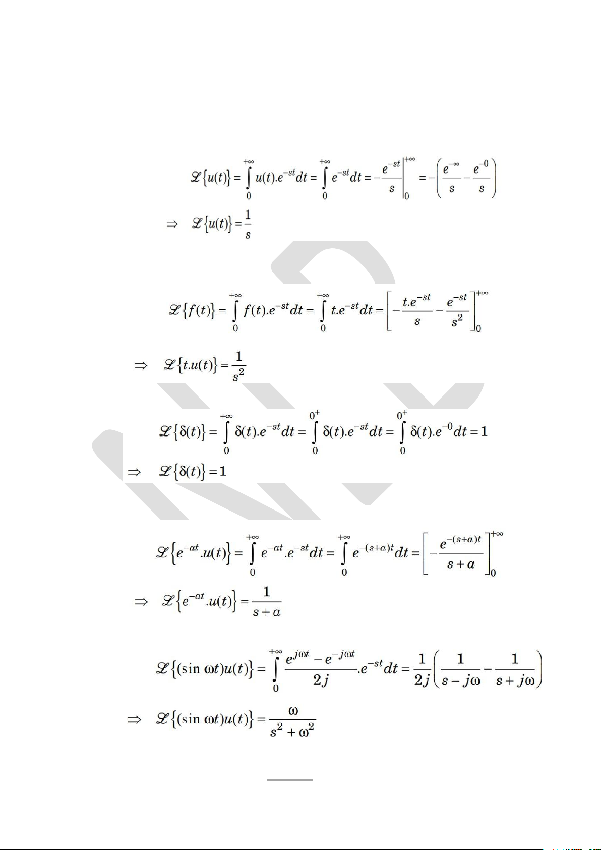 Câu 1: Thực hiện phép biến đổi Laplace a) Hàm nấc đơn vị b) Hàm dốc đơn vị c) Hàm dirac d) Hàm mũ đơn vị e) Hàm sin f) Hàm cos s