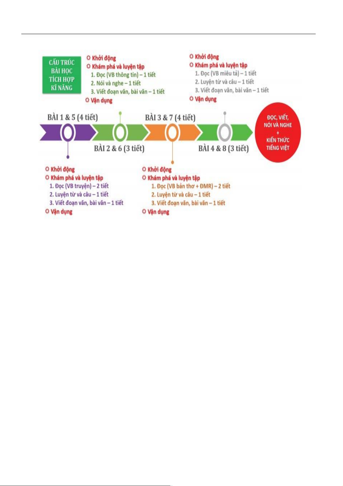viết, nói và nghe. Kiến thức tiếng Việt và văn học được tích hợp trong quá trình