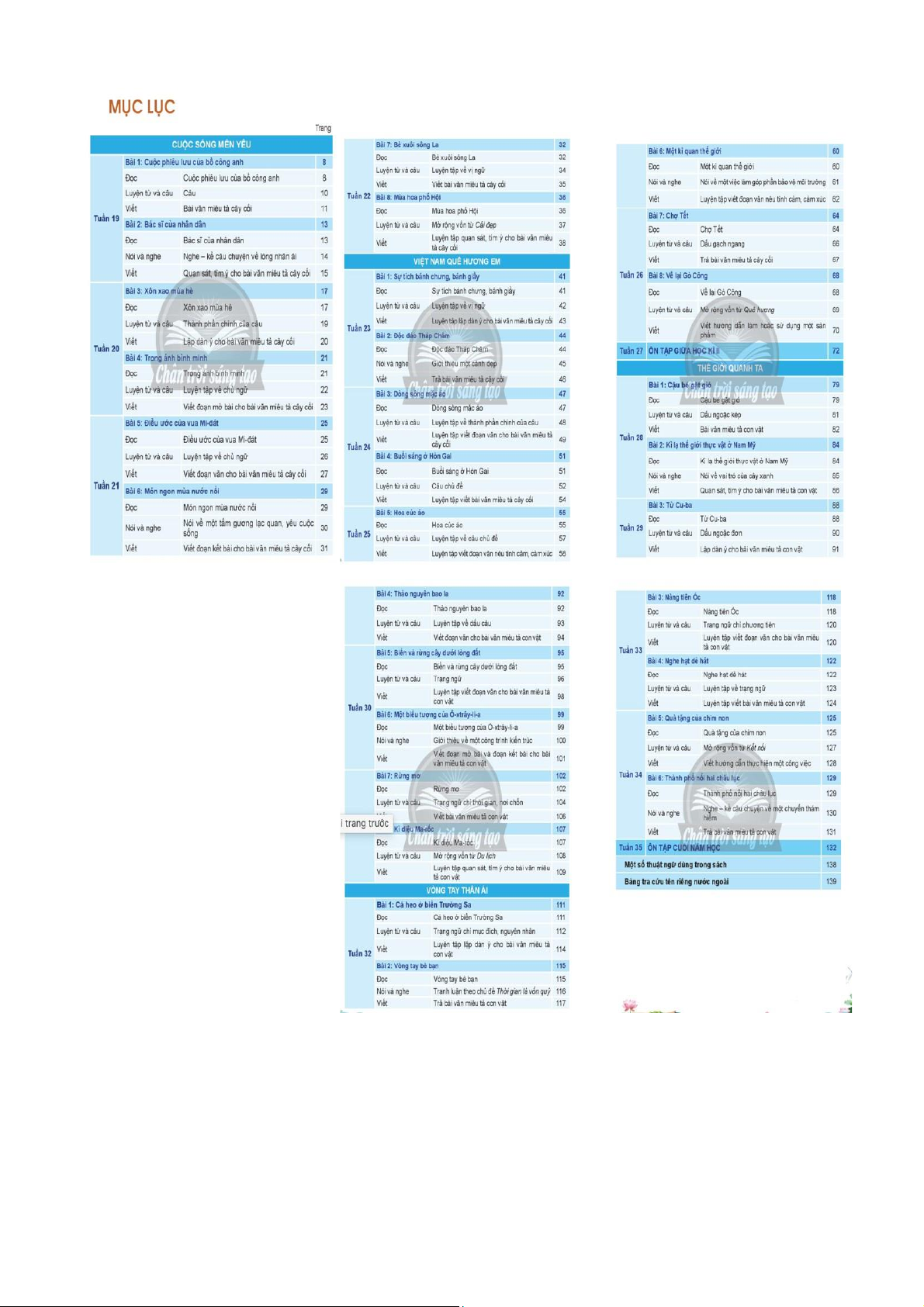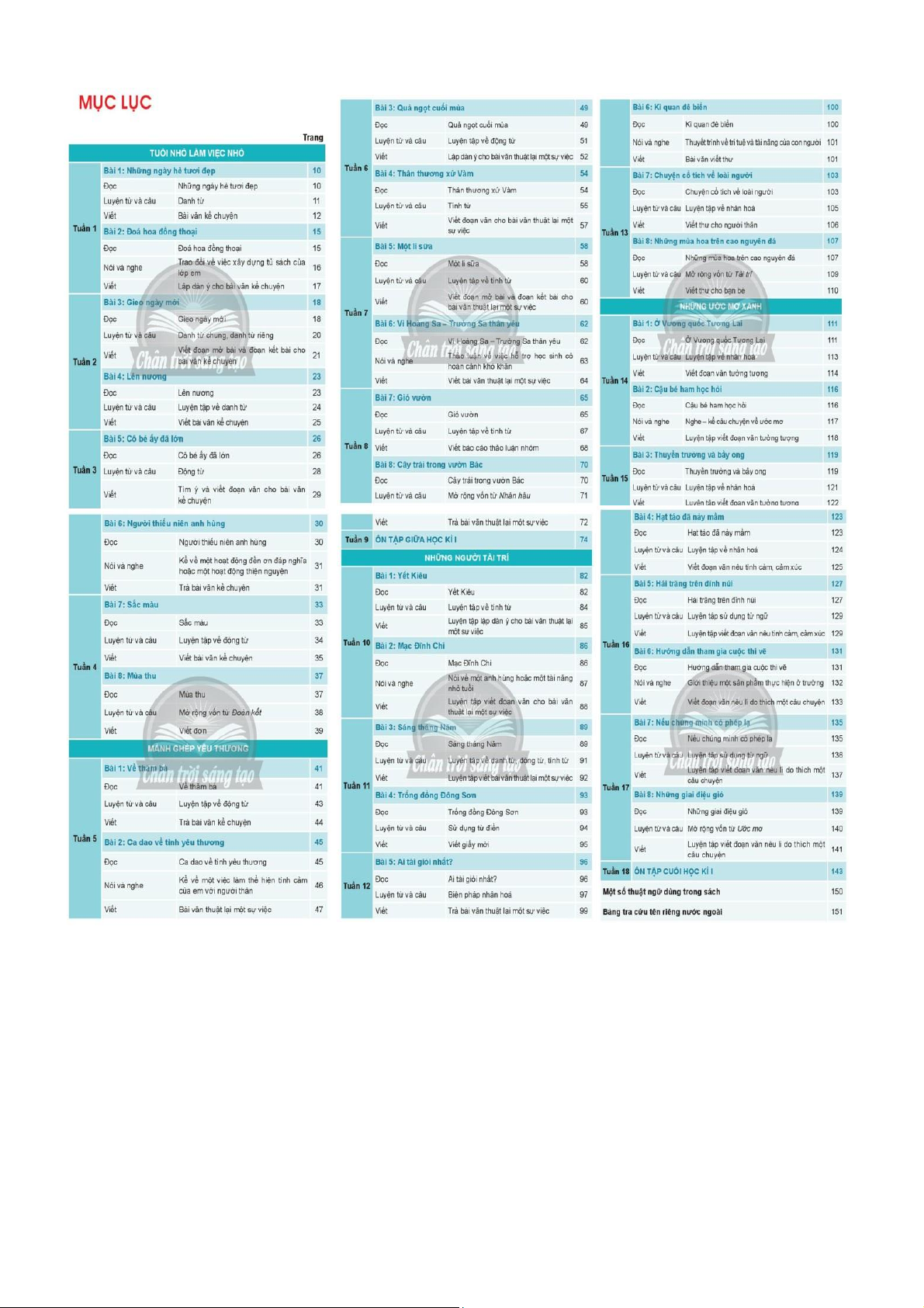 2. Nội dung chương trình sách Tiếng việt 4 (bộ sách Chân trời sáng tạo) và