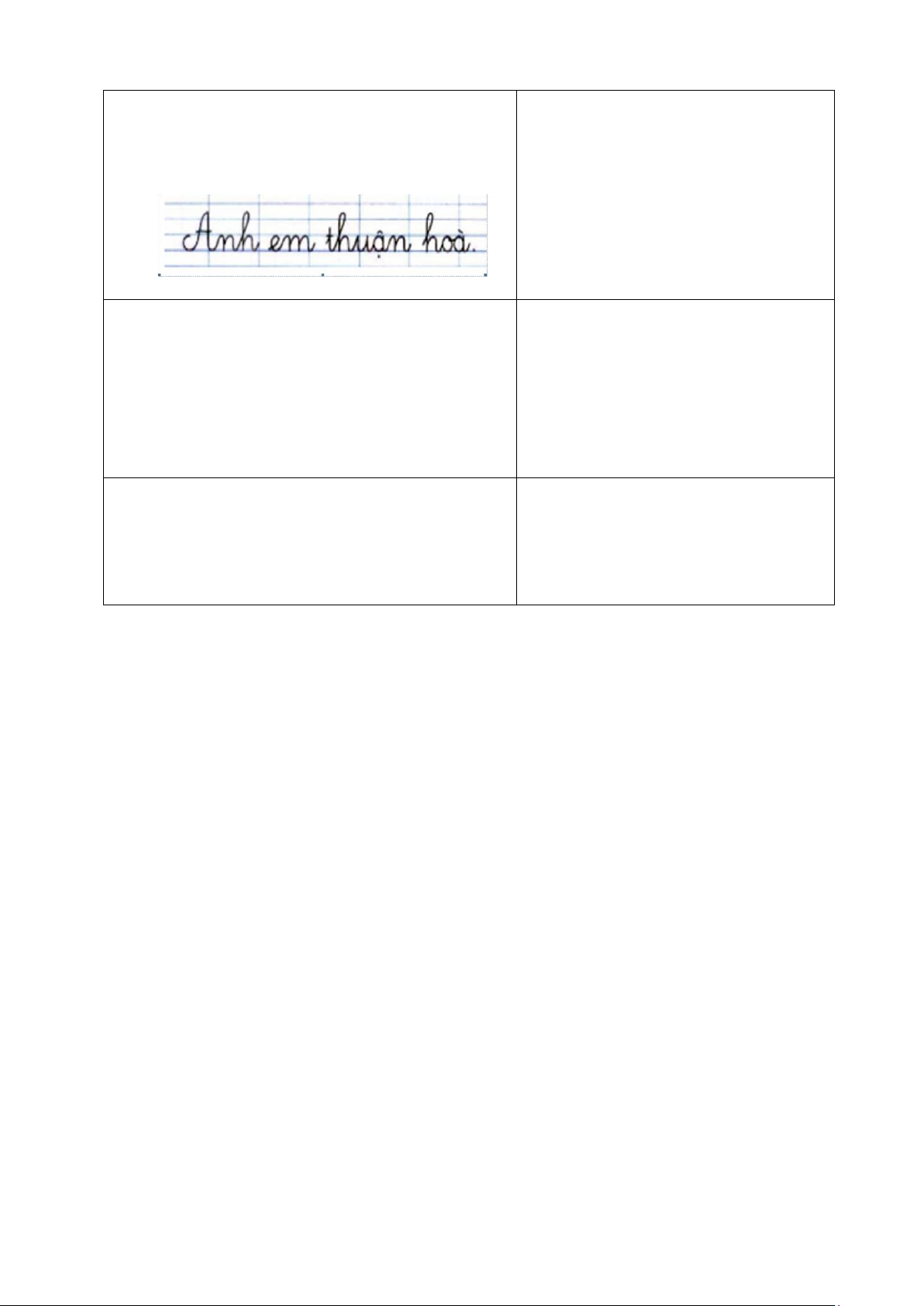 - Biết viết câu ứng dụng “Anh em thuận hoà” theo cỡ nhỏ, chữ viết đúng