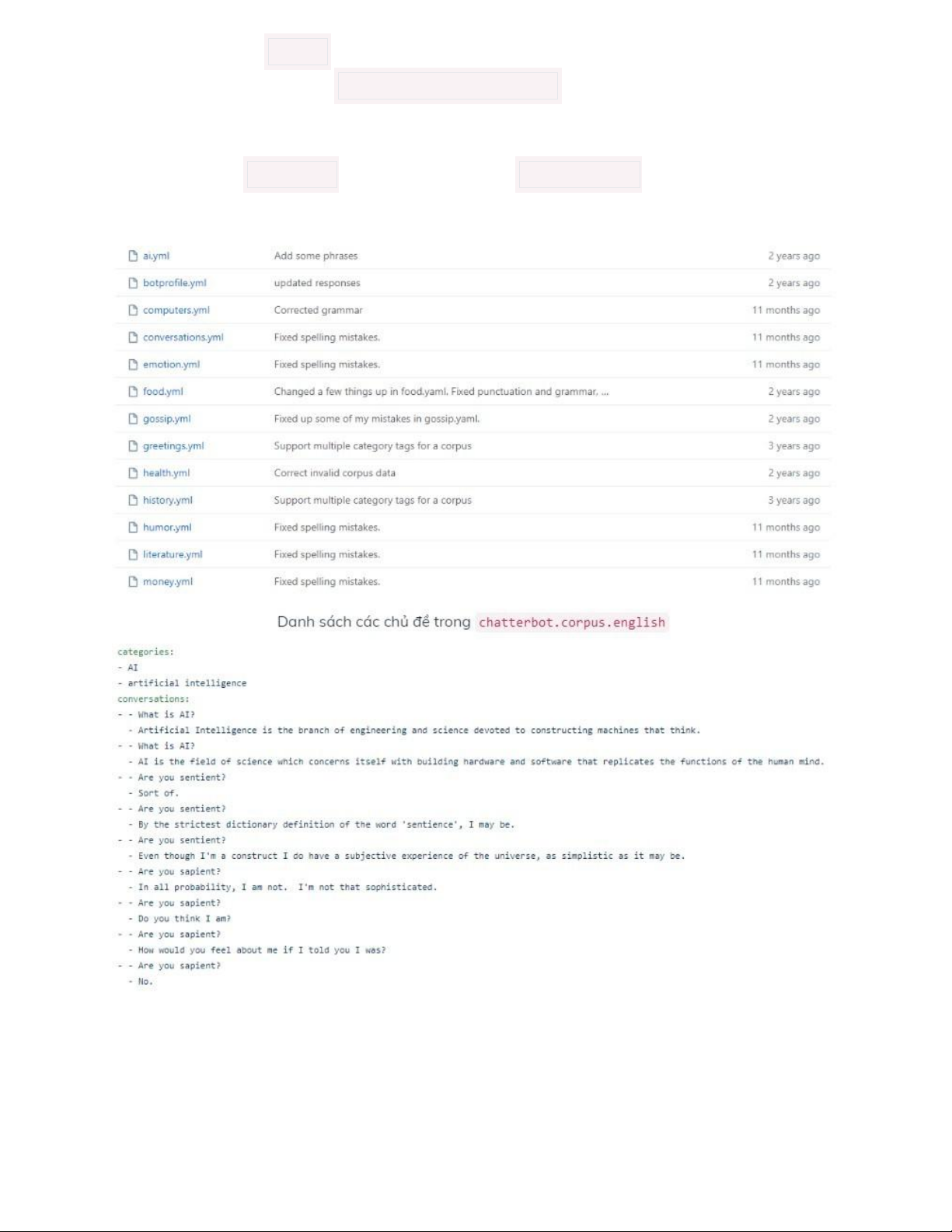 liệu có sẵn của chatterbot. Trong kho dữ liệu