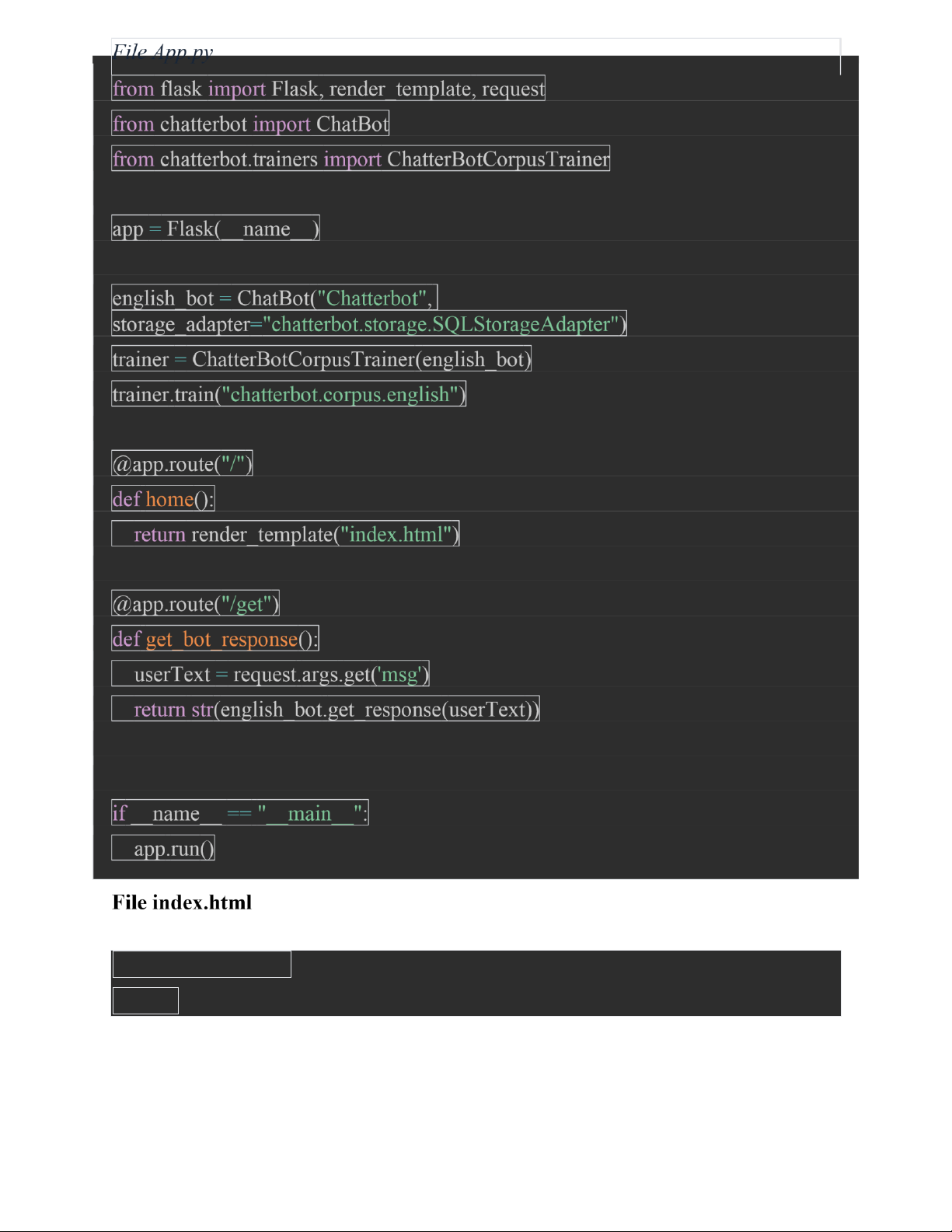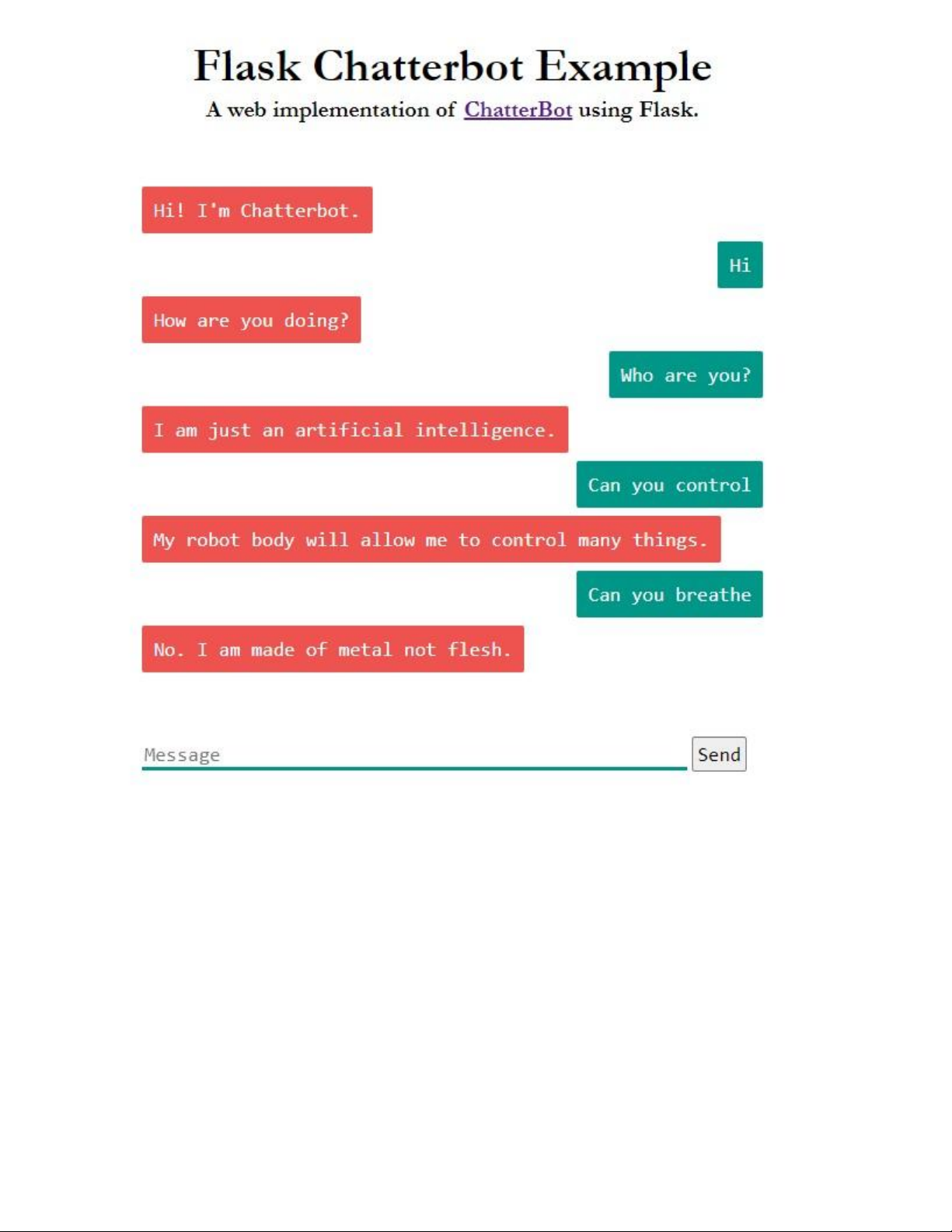 A web implementation of href="https://github.com/gunthercox/ChatterBot">ChatterBot using Flask. id="chatbox">