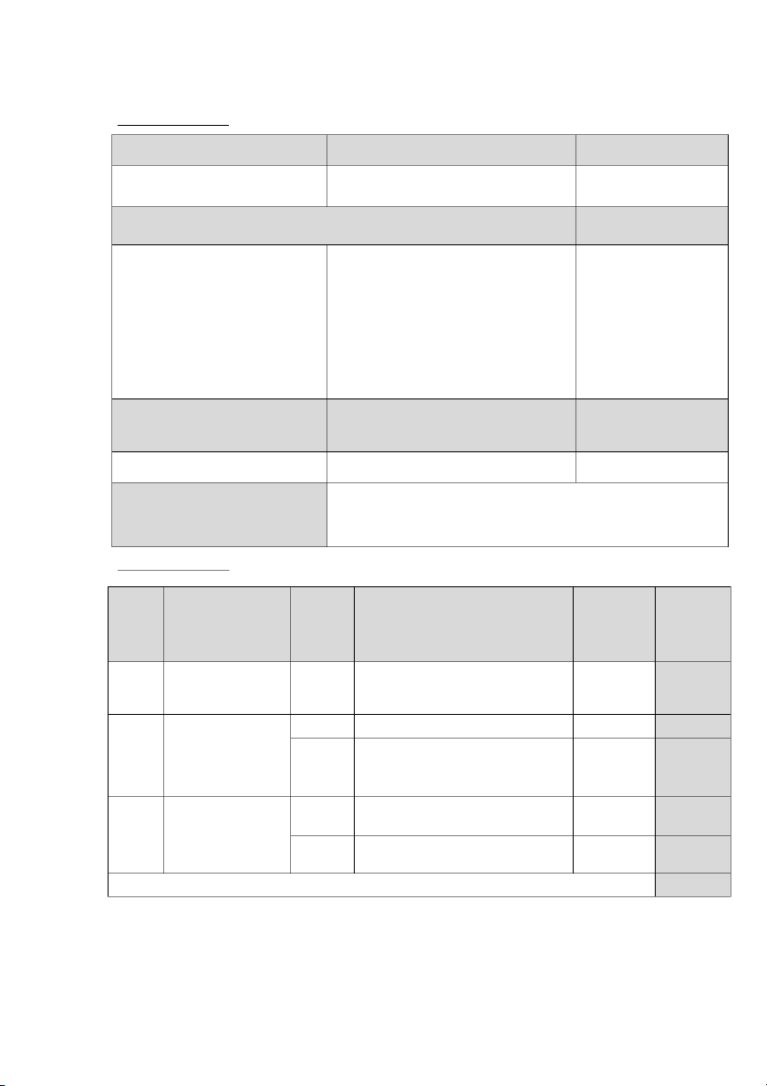 Tên học phần/ Mã học phần/ Tín chỉ Số phần áp dụng