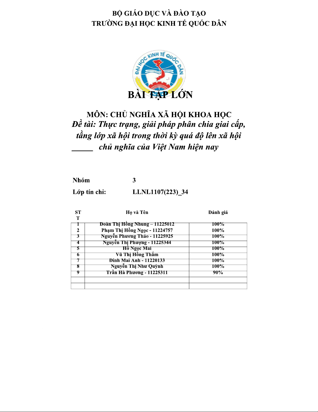 Bài Tập Lớn: Giai Cấp & Tầng Lớp Xã Hội ở Việt Nam (Môn CNXHKH - LLNL1107)