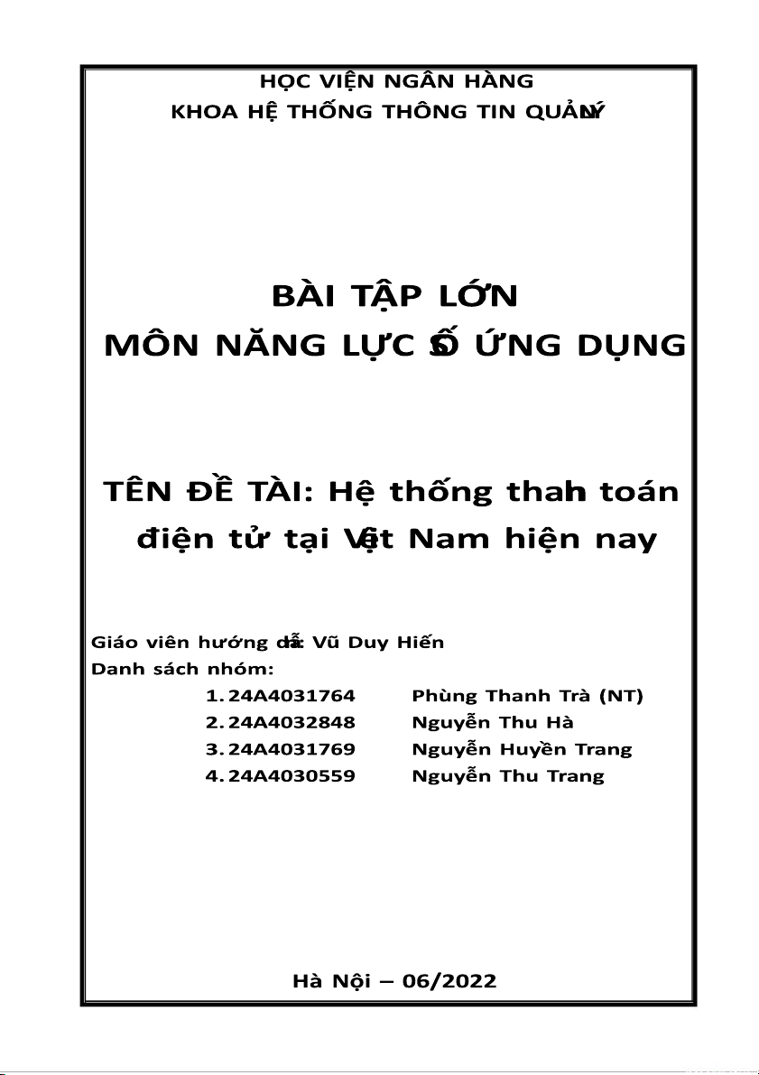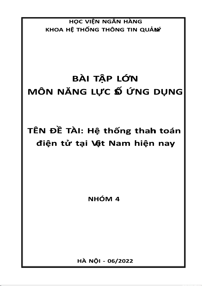“Hệ thống thanh toán điện tử tại Việt Nam hiện nay” làm chủ đề cho bài tập lớn này dưới