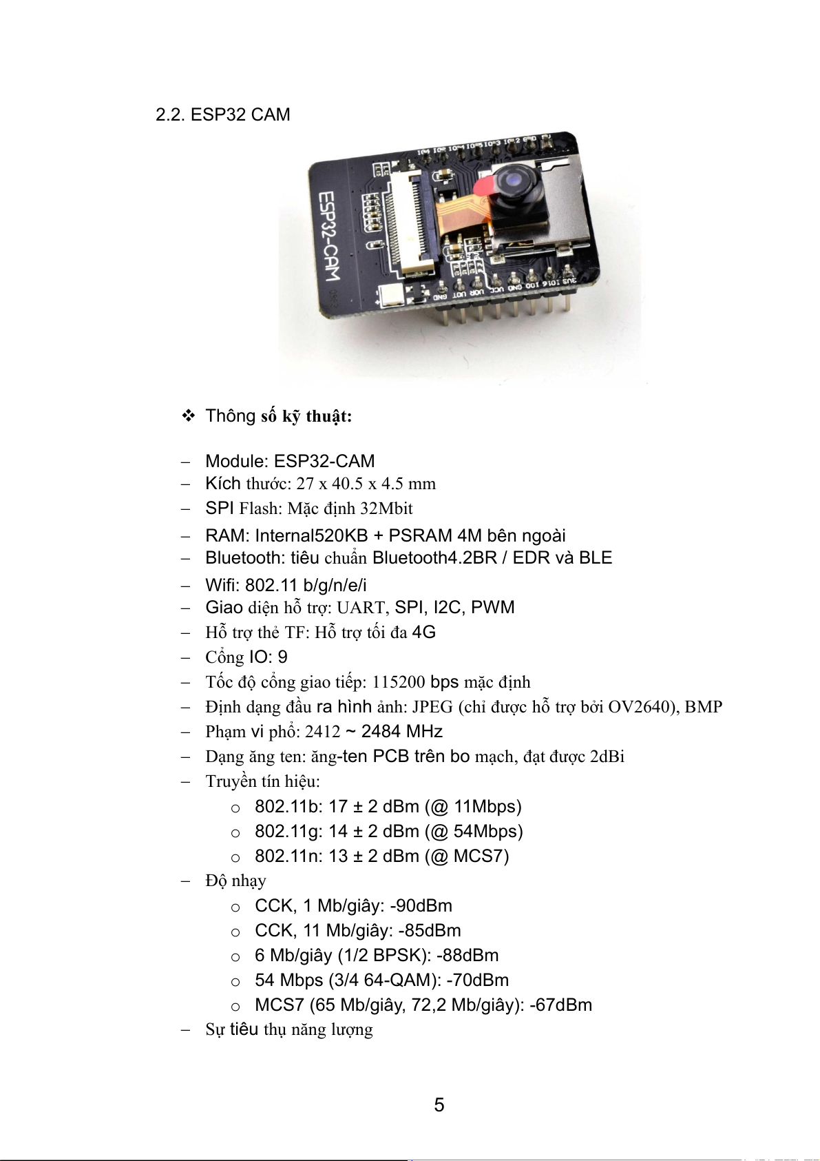 ❖ Thông số kỹ thuật: − Module: ESP32-CAM