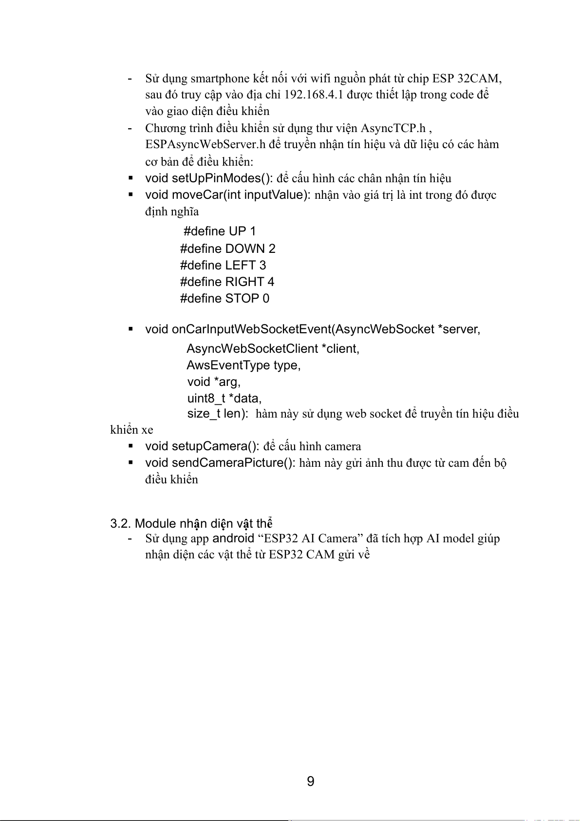 ▪ void moveCar(int inputValue): nhận vào giá trị là int trong đó được định nghĩa #define UP 1 #define DOWN 2 #define LEFT 3 #define RIGHT 4 #define STOP 0