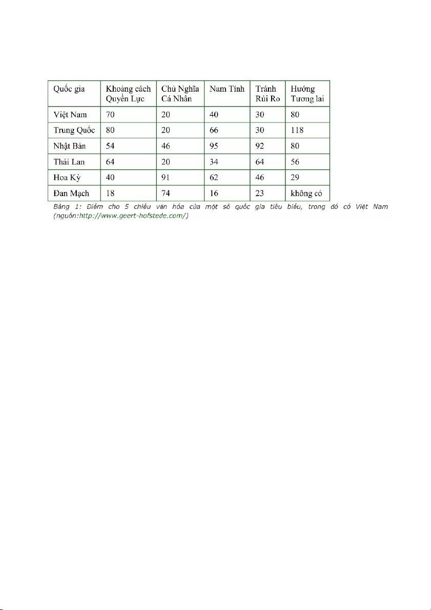 giới thì có thể thấy nền văn hoá Việt Nam có khoảng cách quyền lực cao (70), chủ nghĩa