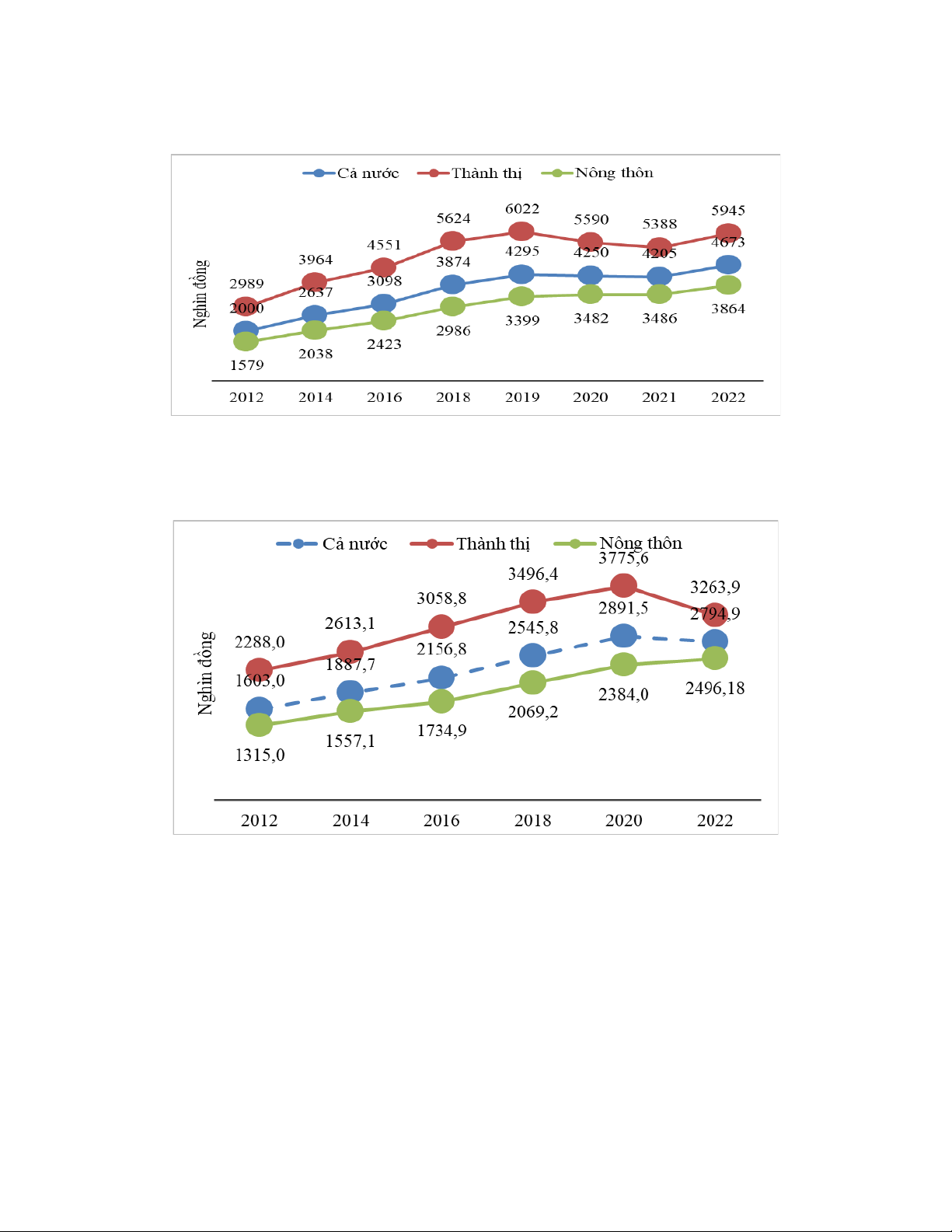 2022 dao động từ 3.864.000 VNĐ ở nông thôn đến 5.945.000 VNĐ ở