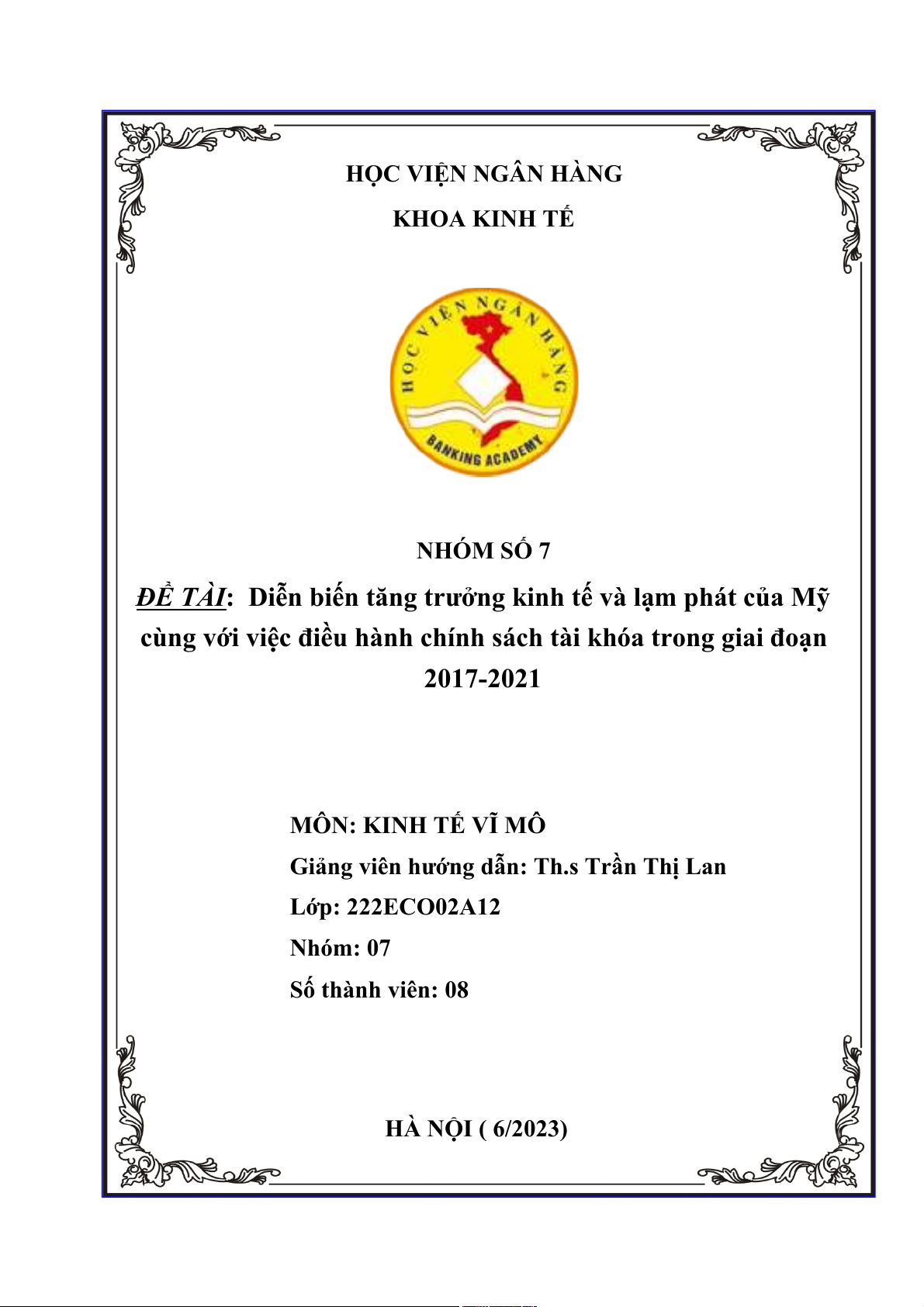 cùng với việc điều hành chính sách tài khóa trong giai đoạn 2017-2021 MÔN: KINH TẾ VĨ MÔ